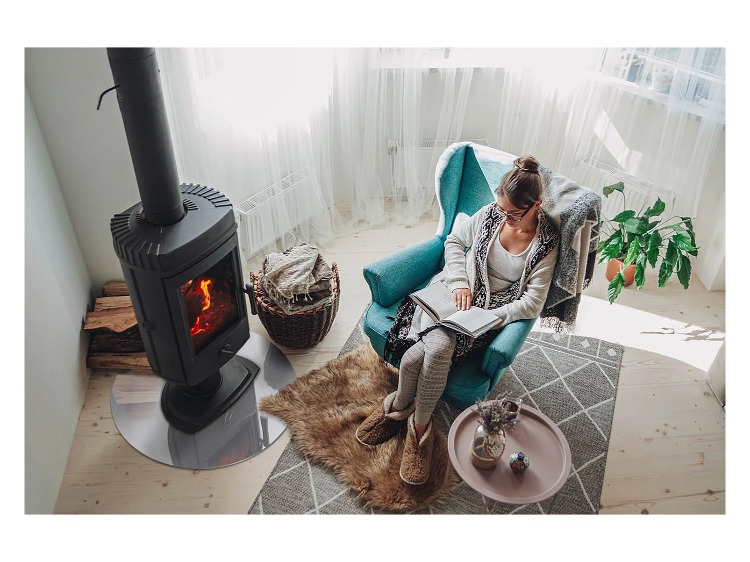 Plaque de sol en verre pour poêle - Roue - 60x60 - Motif en pierre naturelle