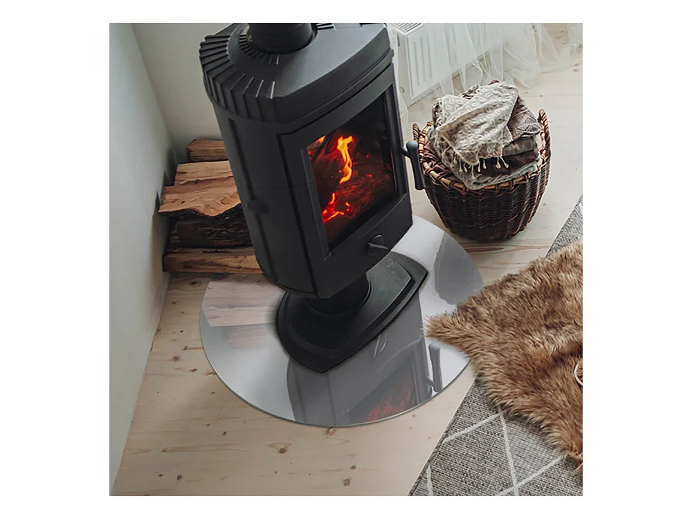 Plaque de sol en verre pour poêle - Roue - 60x60 - Couleur Gris
