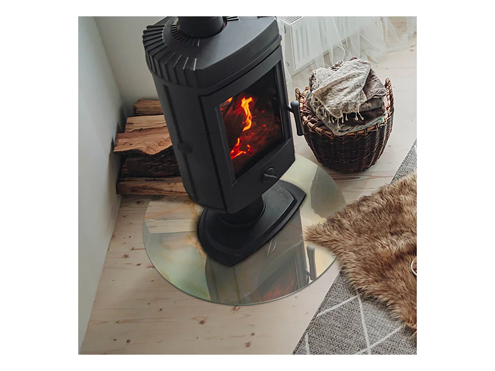 Plaque de sol en verre pour poêle - Roue - 60x60 - Modèle fluide abstrait