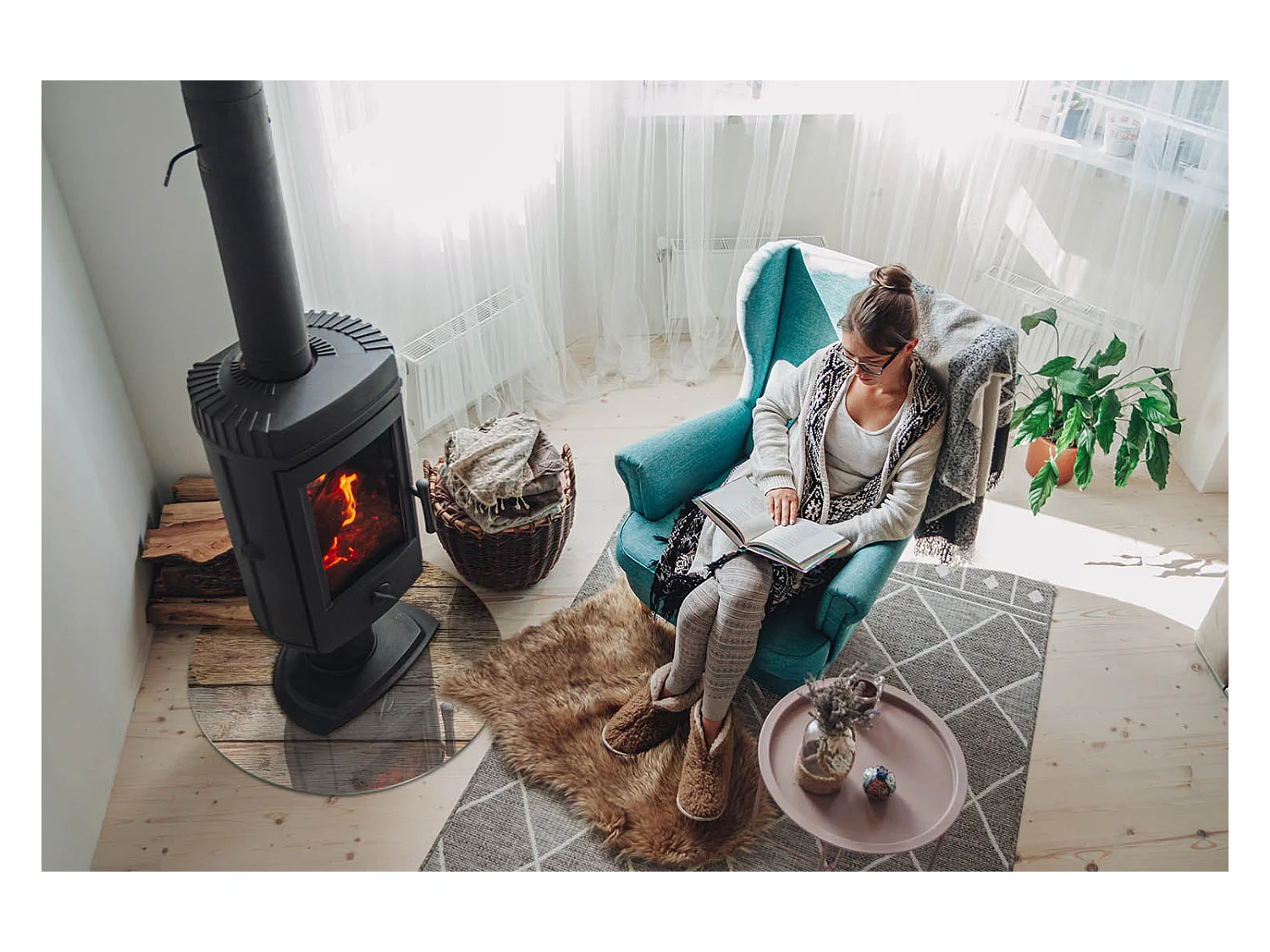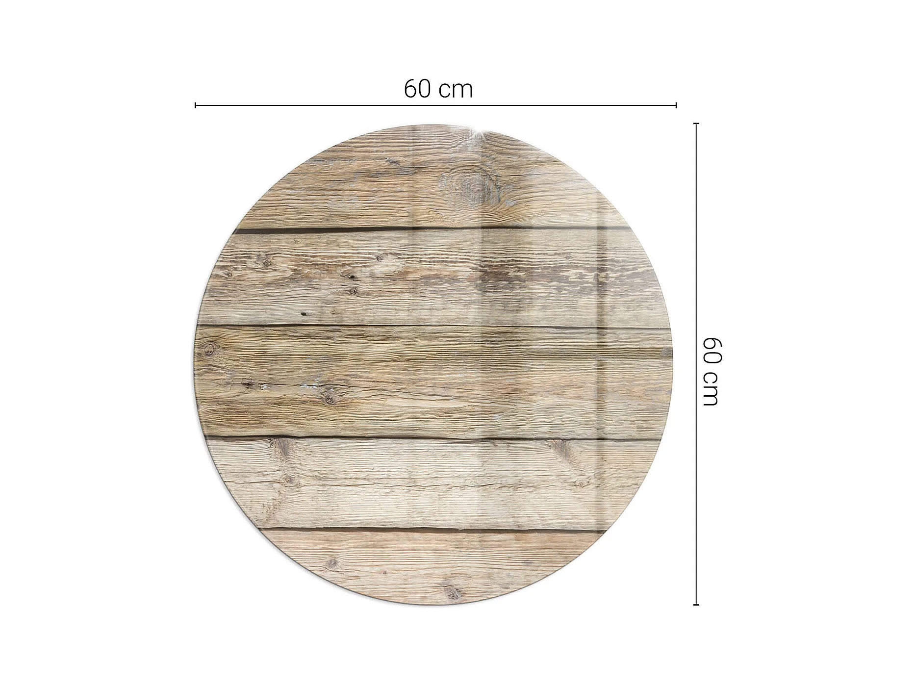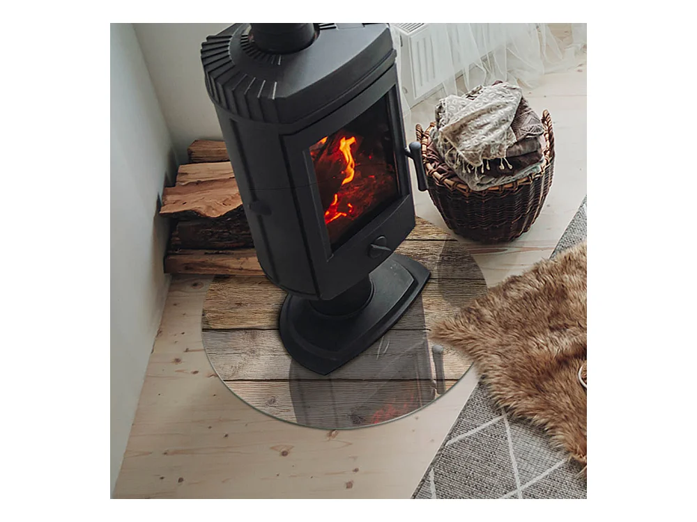 Plaque de sol en verre pour poêle - Roue - 60x60 - Texture des planches de bois