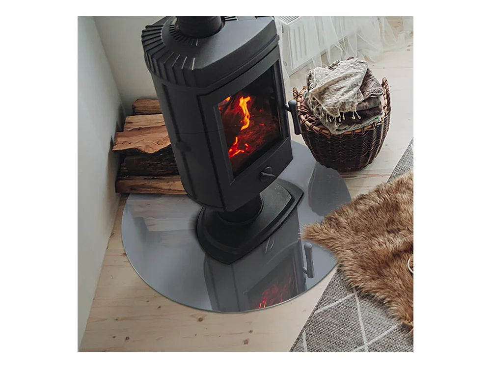 Plaque de sol en verre pour poêle - Roue - 70X70 - Couleur Gris