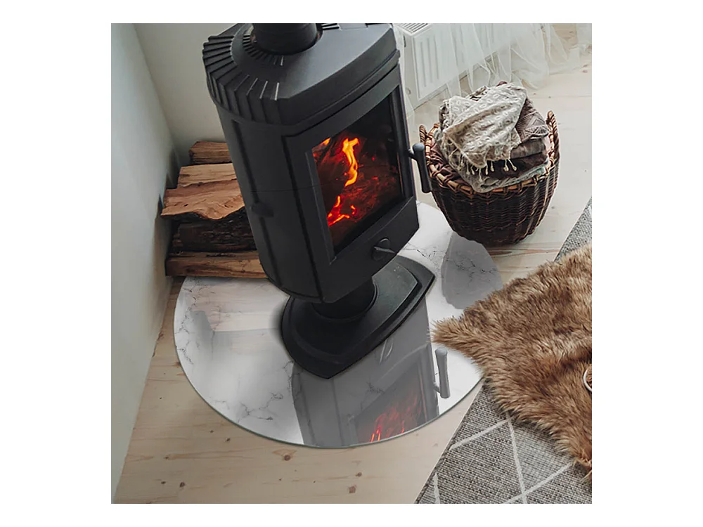 Plaque de sol en verre pour poêle - Roue - 70X70 - Modèle de marbre avec des veines