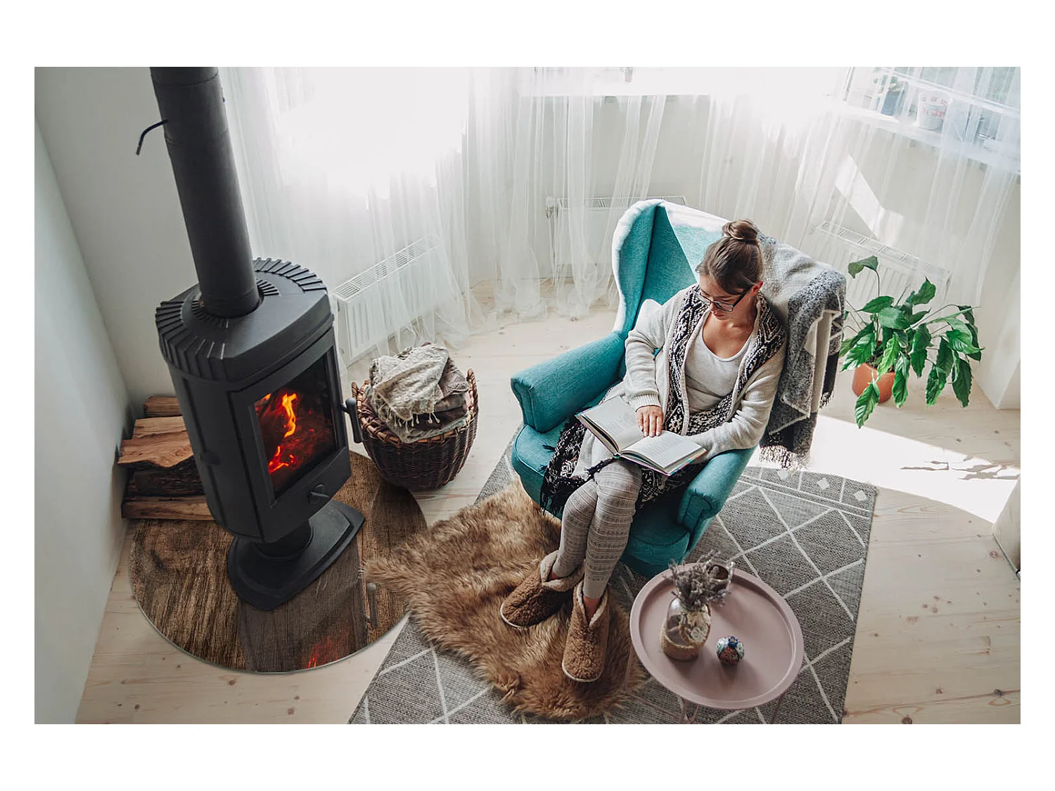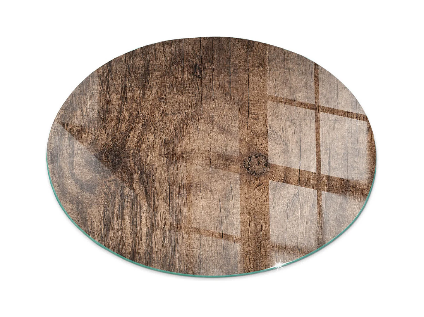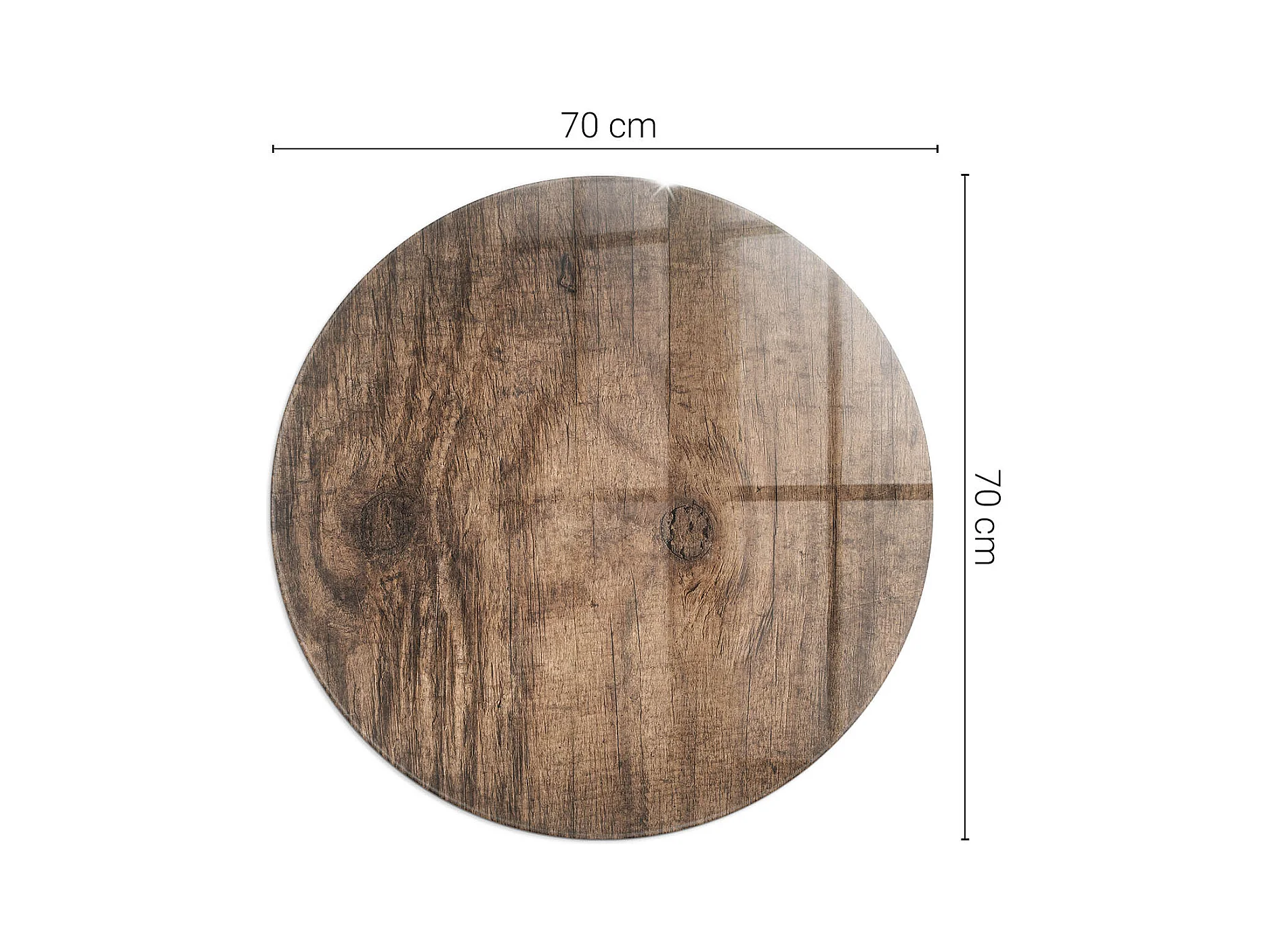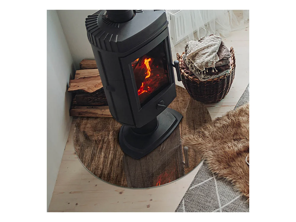 Plaque de sol en verre pour poêle - Roue - 70X70 - Modèle en bois naturel
