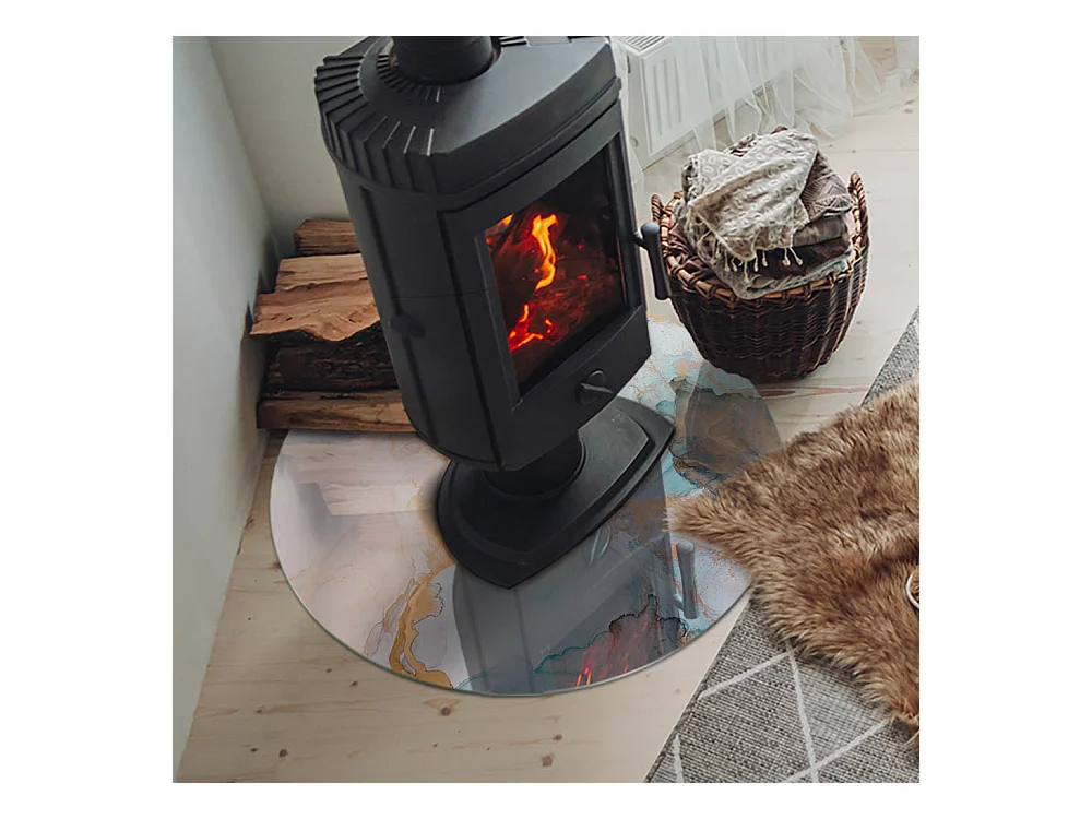 Plaque de sol en verre pour poêle - Roue - 70X70 - Modèle de marbre abstrait