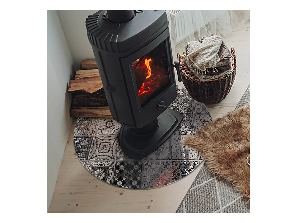 Plaque de sol en verre pour poêle - Roue - 70X70 - Modèles de carreaux décoratifs