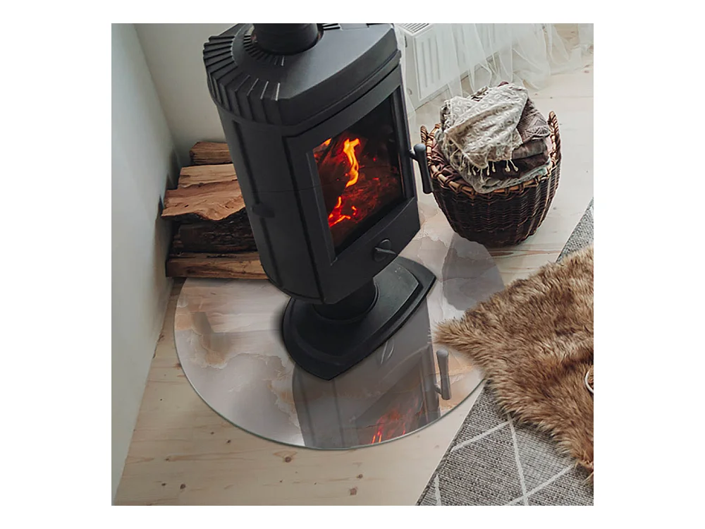 Plaque de sol en verre pour poêle - Roue - 70X70 - Texture de pierre naturelle