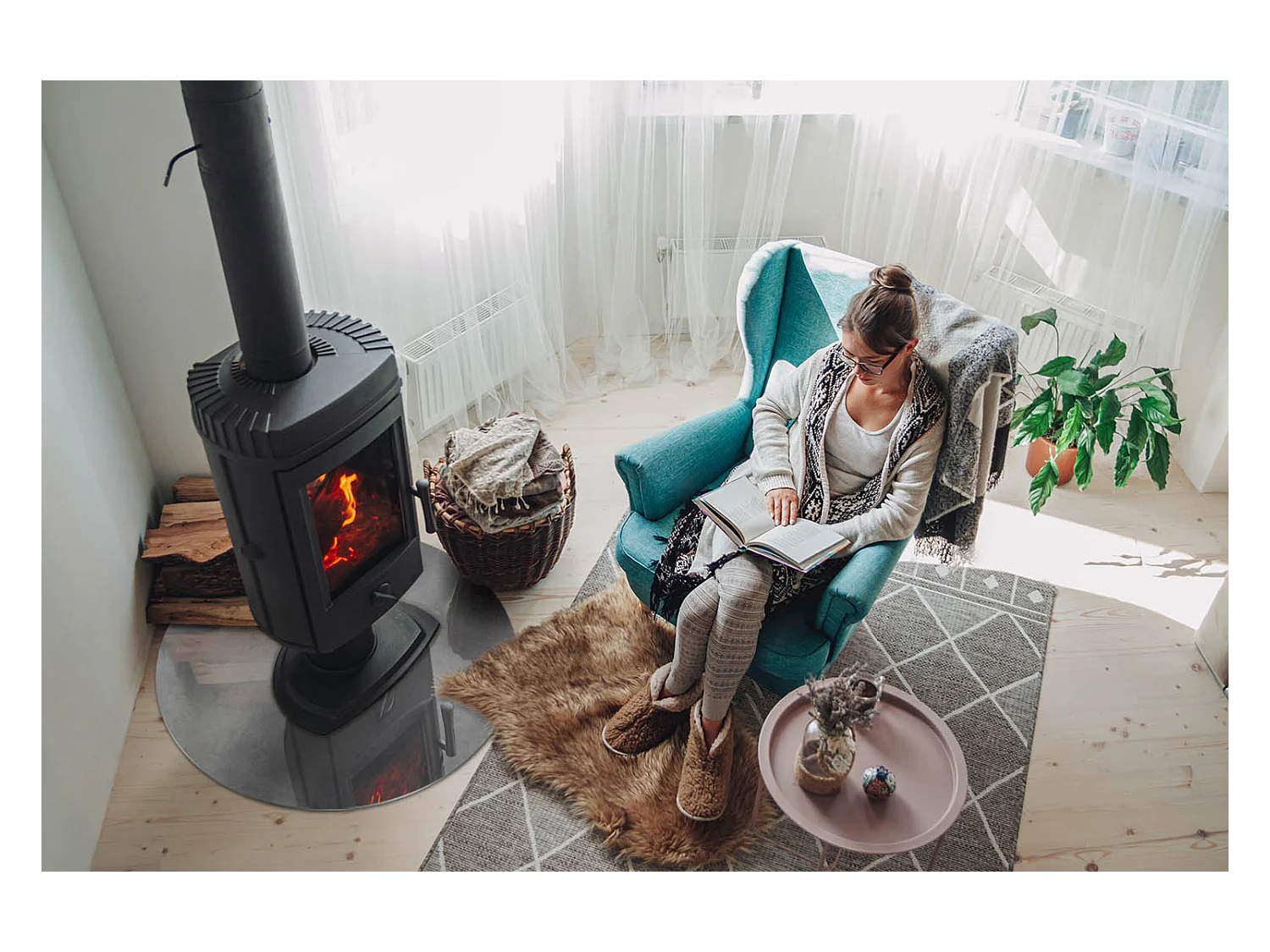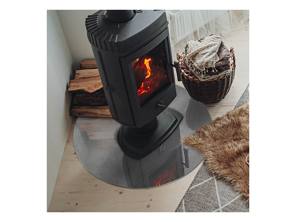 Plaque de sol en verre pour poêle - Roue - 70X70 - Couleur Gris