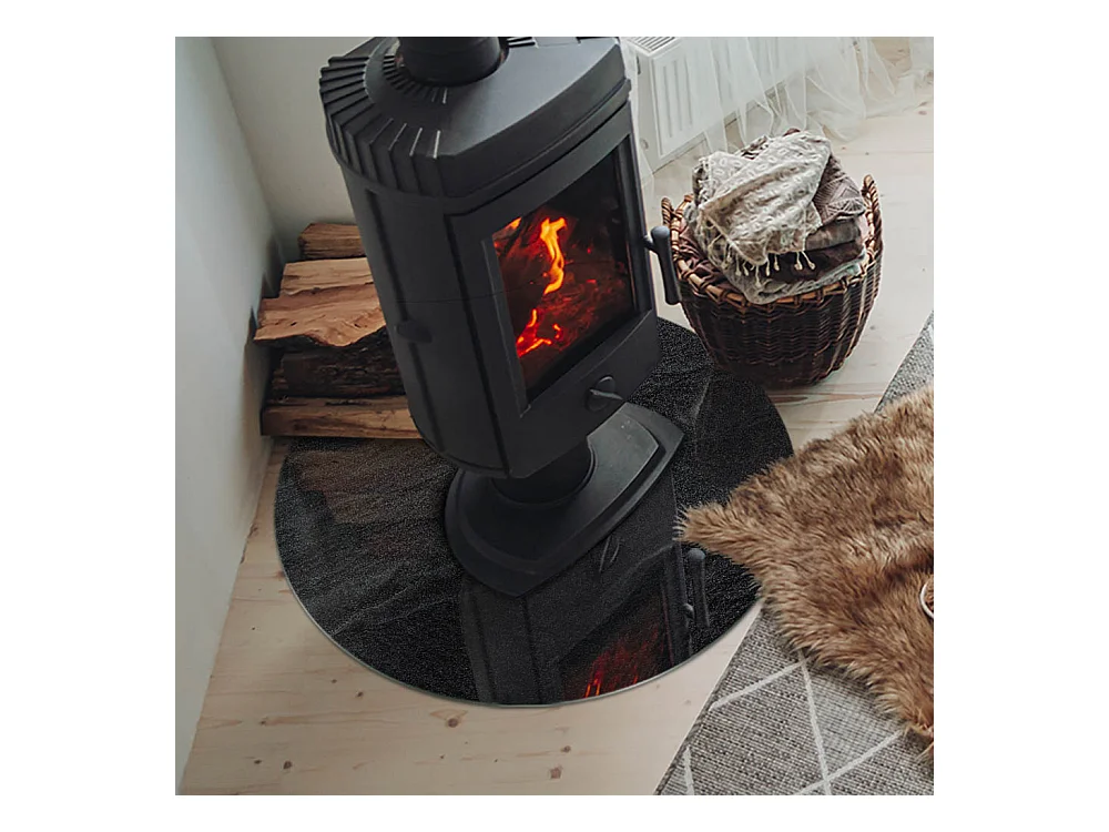 Plaque de sol en verre pour poêle - Roue - 70X70 - Texture de pierre naturelle