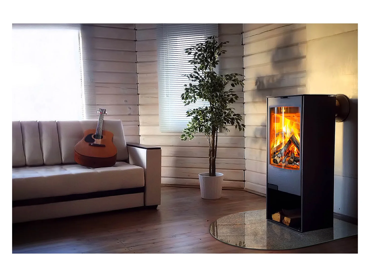 Cheminée électrique 2000W en verre trempé noir avec télécommande
