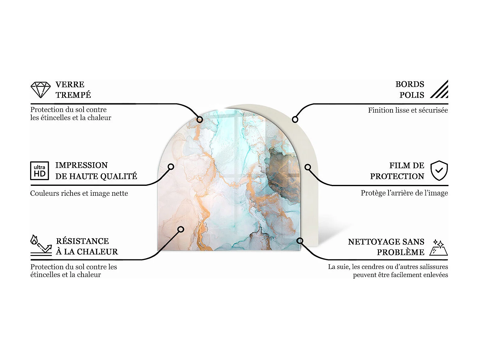 Plaque de sol en verre pour poêle - semi-circulaire - 100x100 - Modèle de marbre abstrait