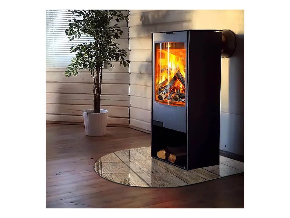 Plaque de sol en verre pour poêle - semi-circulaire - 100x100 - Une boîte avec du bois coupé