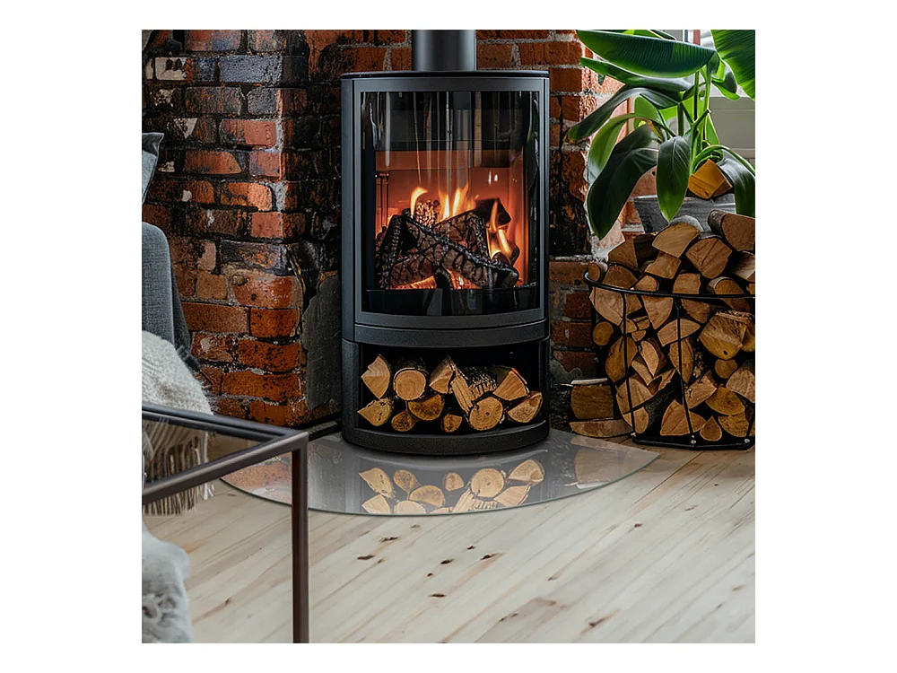 Plaque de sol en verre pour poêle - semi-circulaire - 100x100 - Géométrie avec le bois