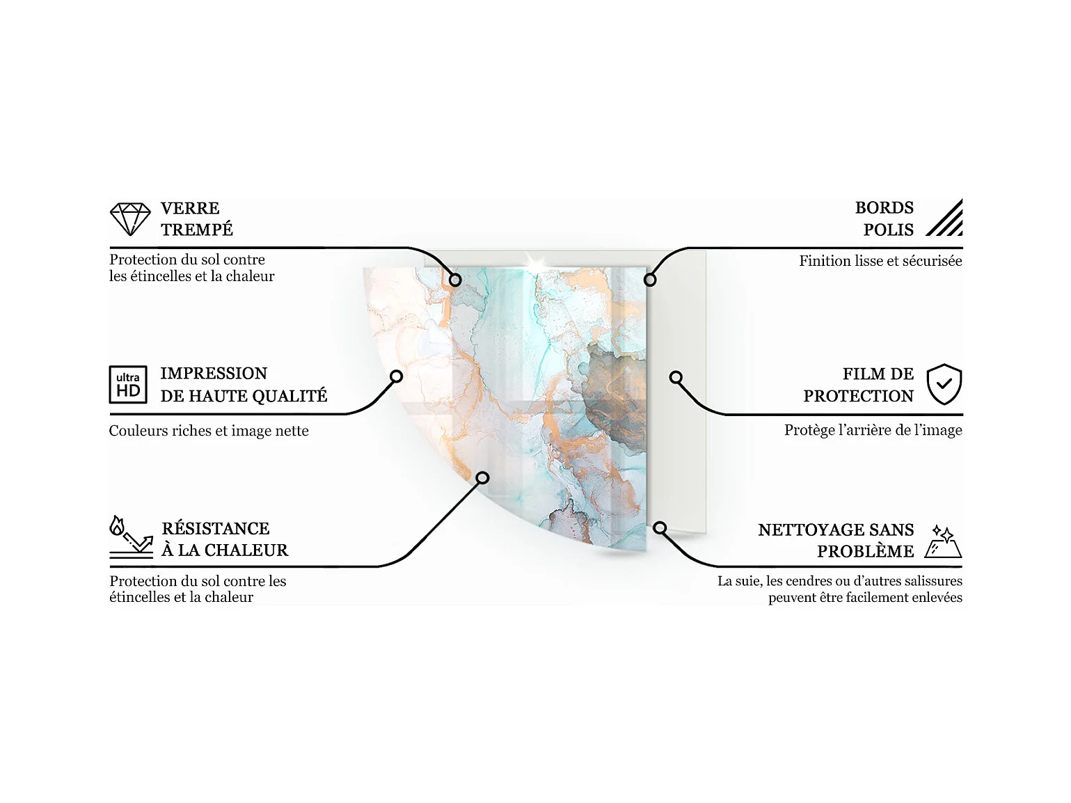 Plaque de sol en verre pour poêle - Un quart - 1/4 100x100 - Modèle de marbre abstrait