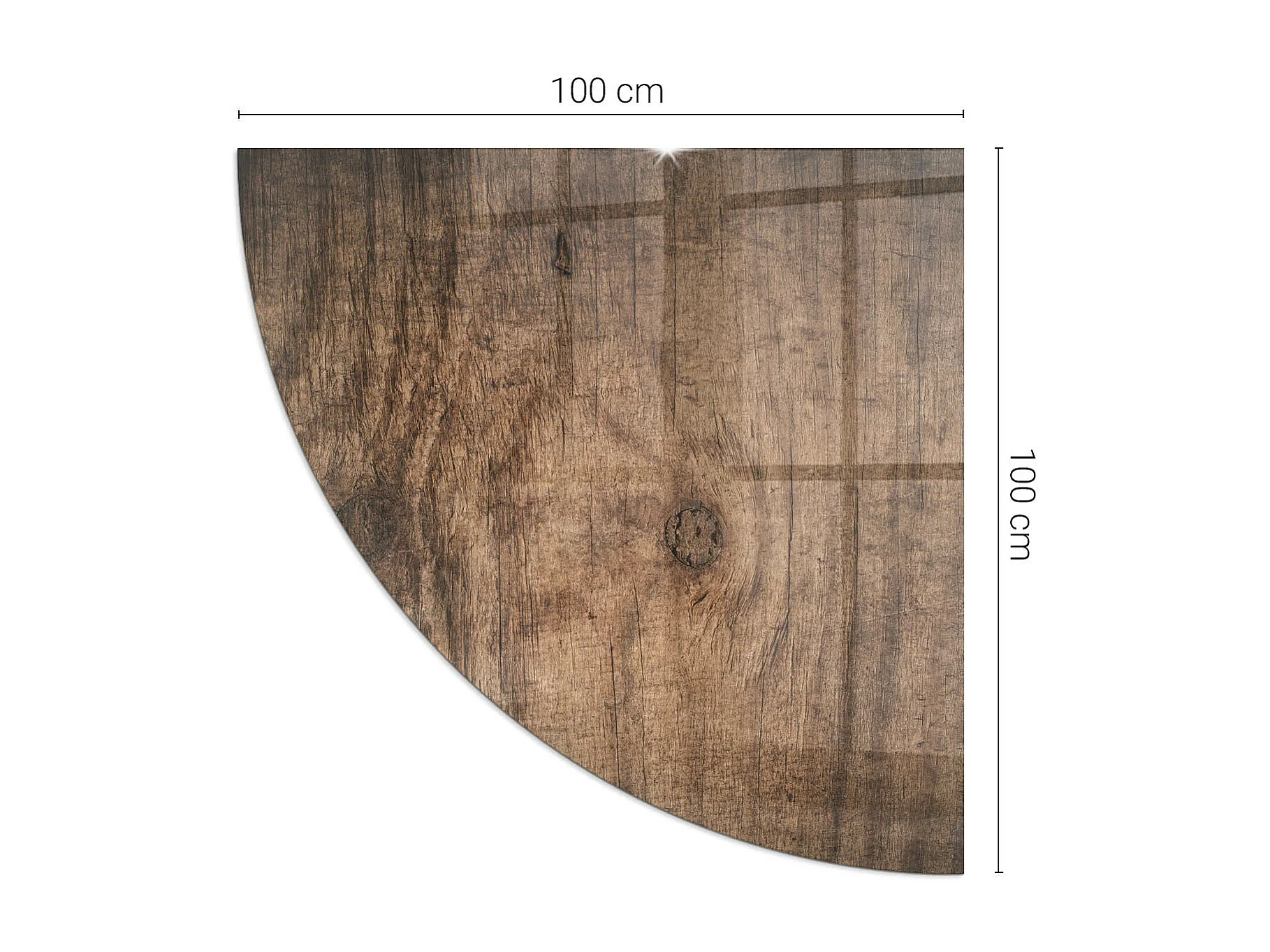 Plaque de sol en verre pour poêle - semi-circulaire - 100x100 - Planche de bois endommagée