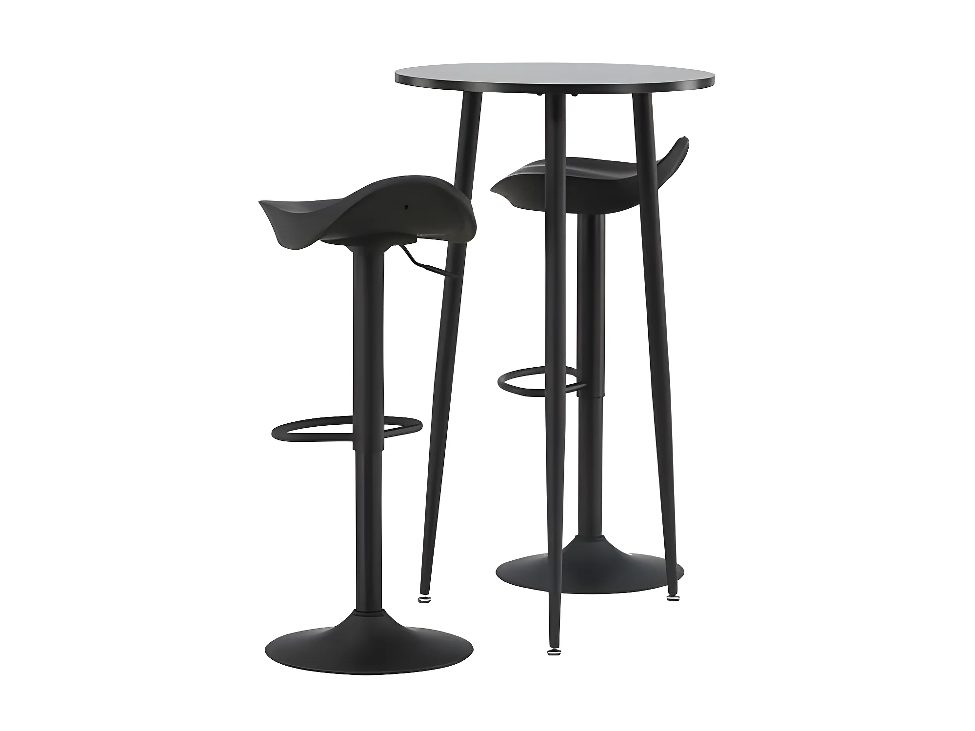 Plaza ensemble de meubles de bar table de bar noir et 2 Adesto tabourets de bar noir.