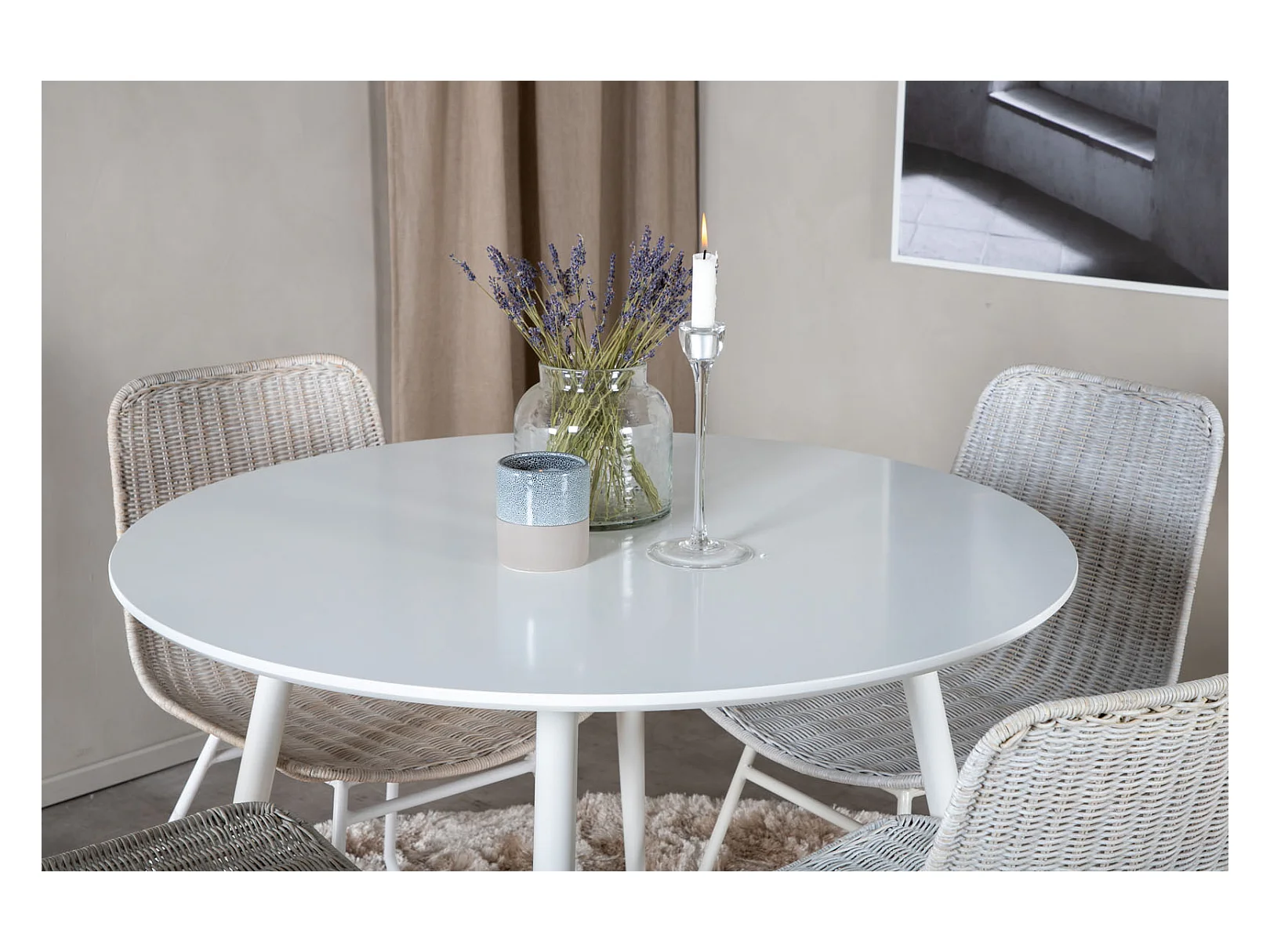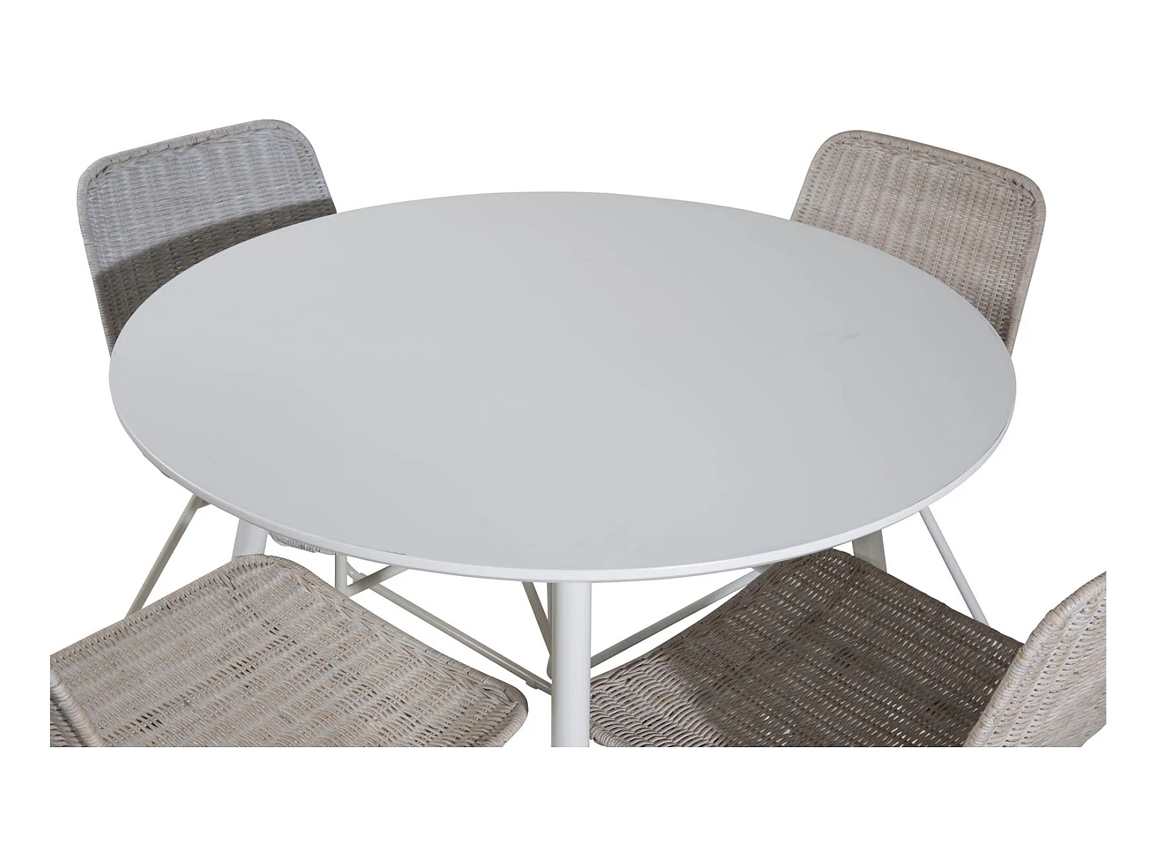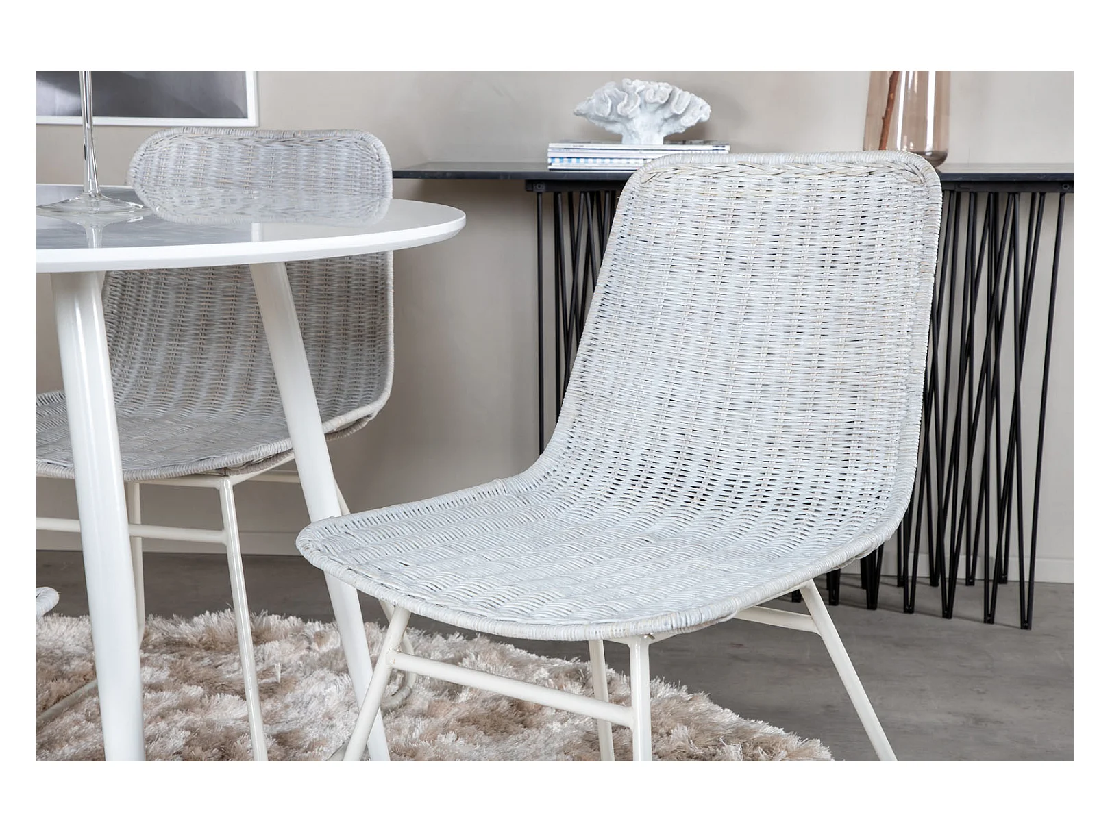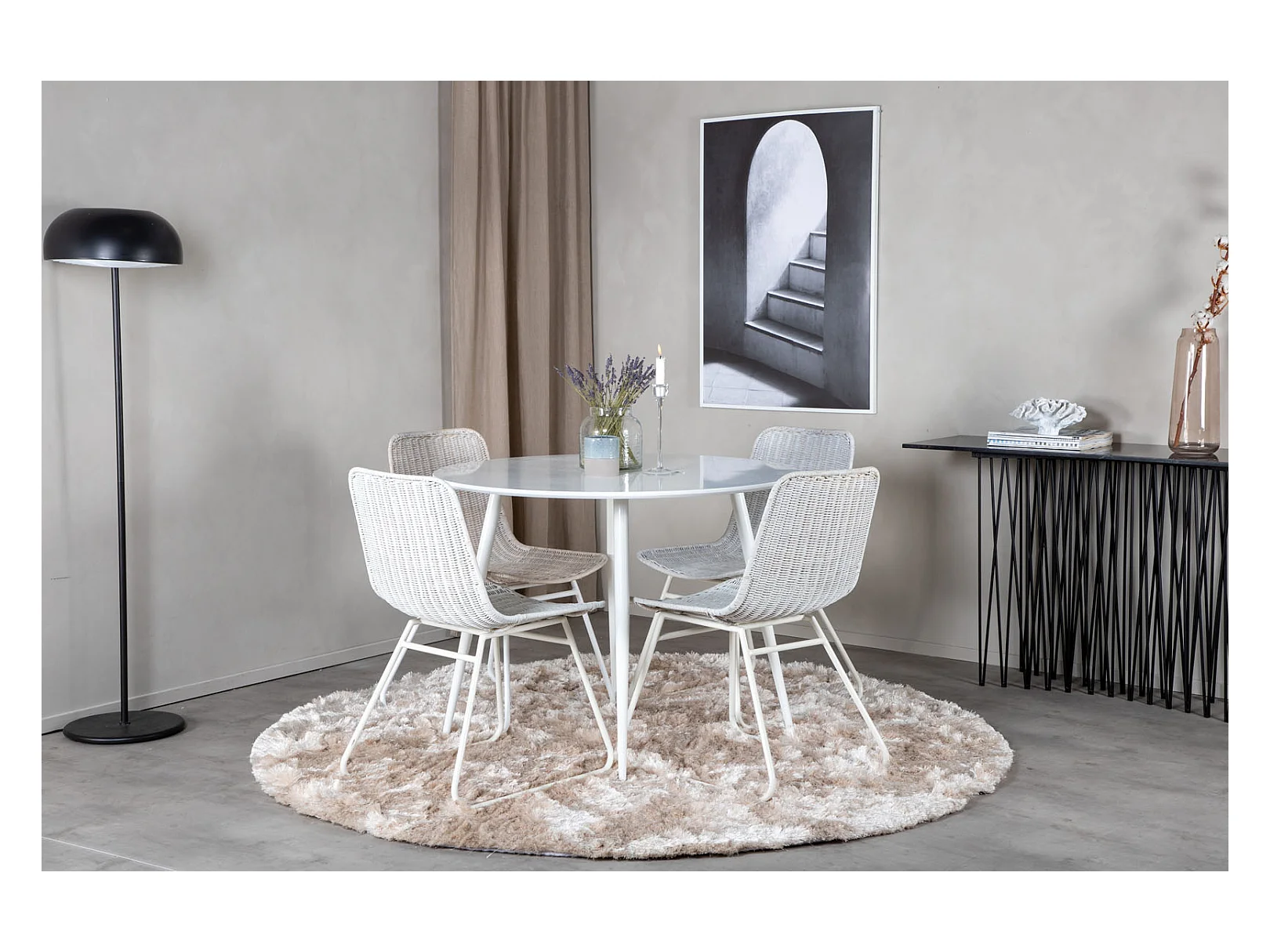 PlazaWHWH100 ensemble table, table blanc et 4 Cirebon chaises rougein whitewash.