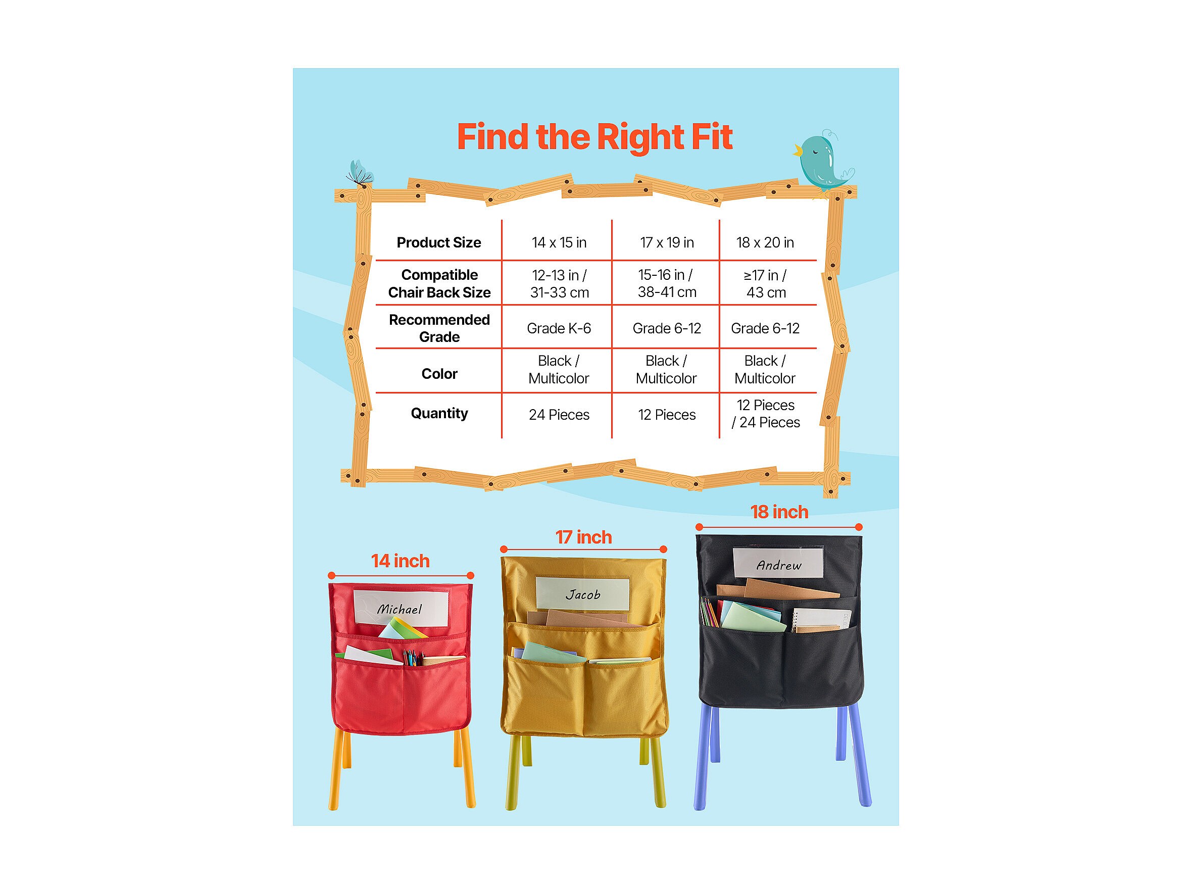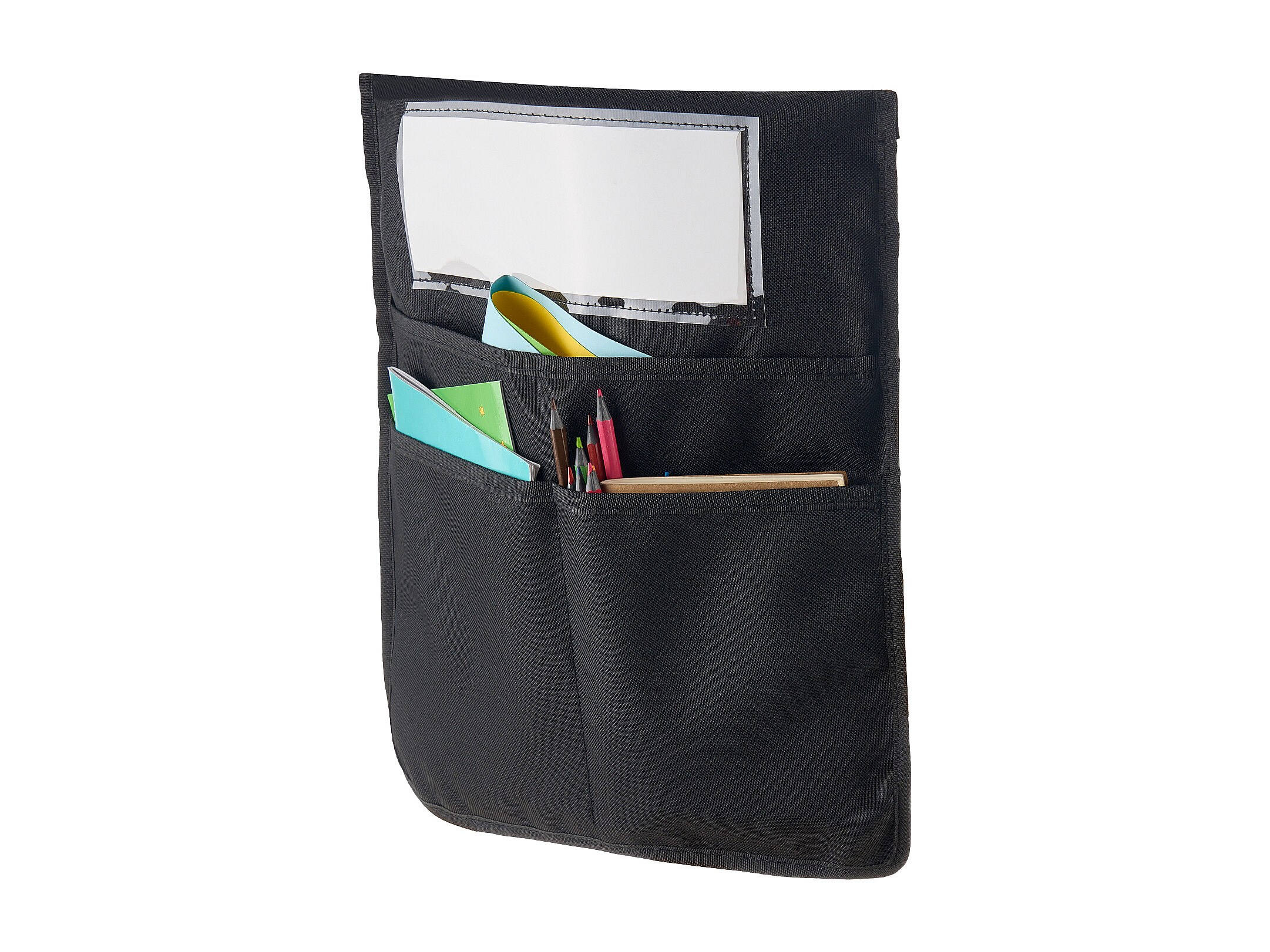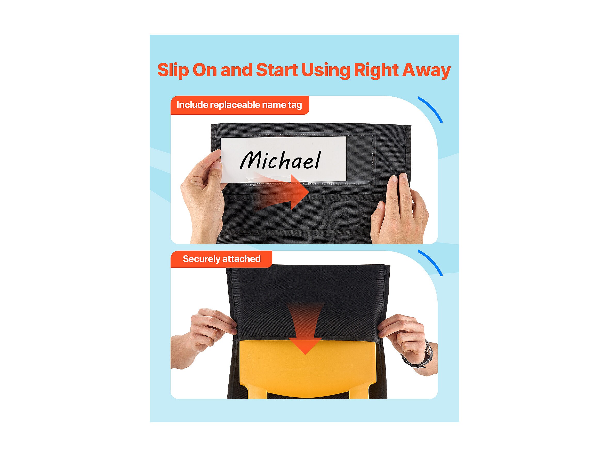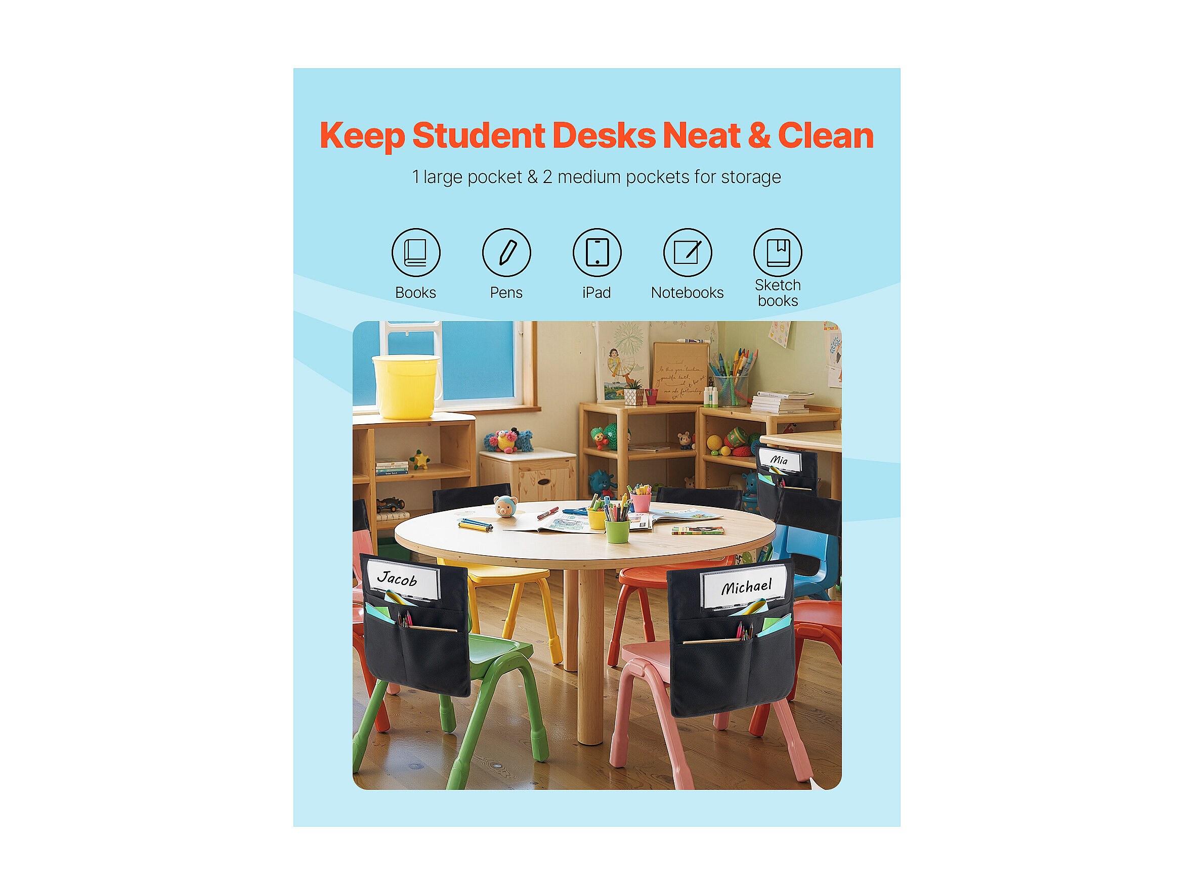 Pochette de Chaise SucceBuy, Lot de 12, Poche Rangement Dossier Chaise, 43x48 cm, avec Étiquette Nominative, pour Salle de Classe, Maternelle, École, Maison, Noir