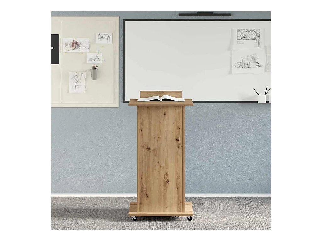 Pupitre et roues et tiroir chêne marron bois d'ingénierie