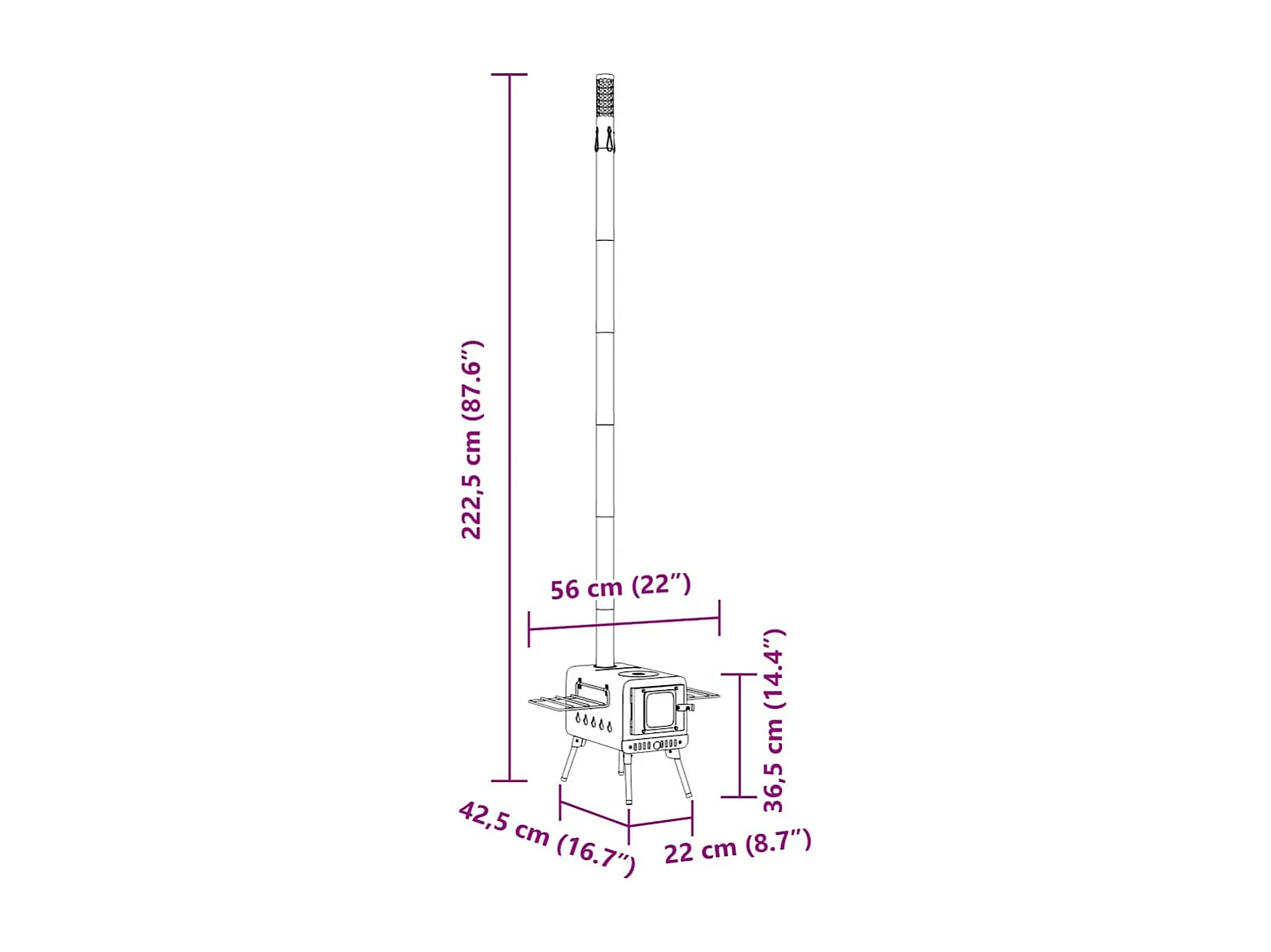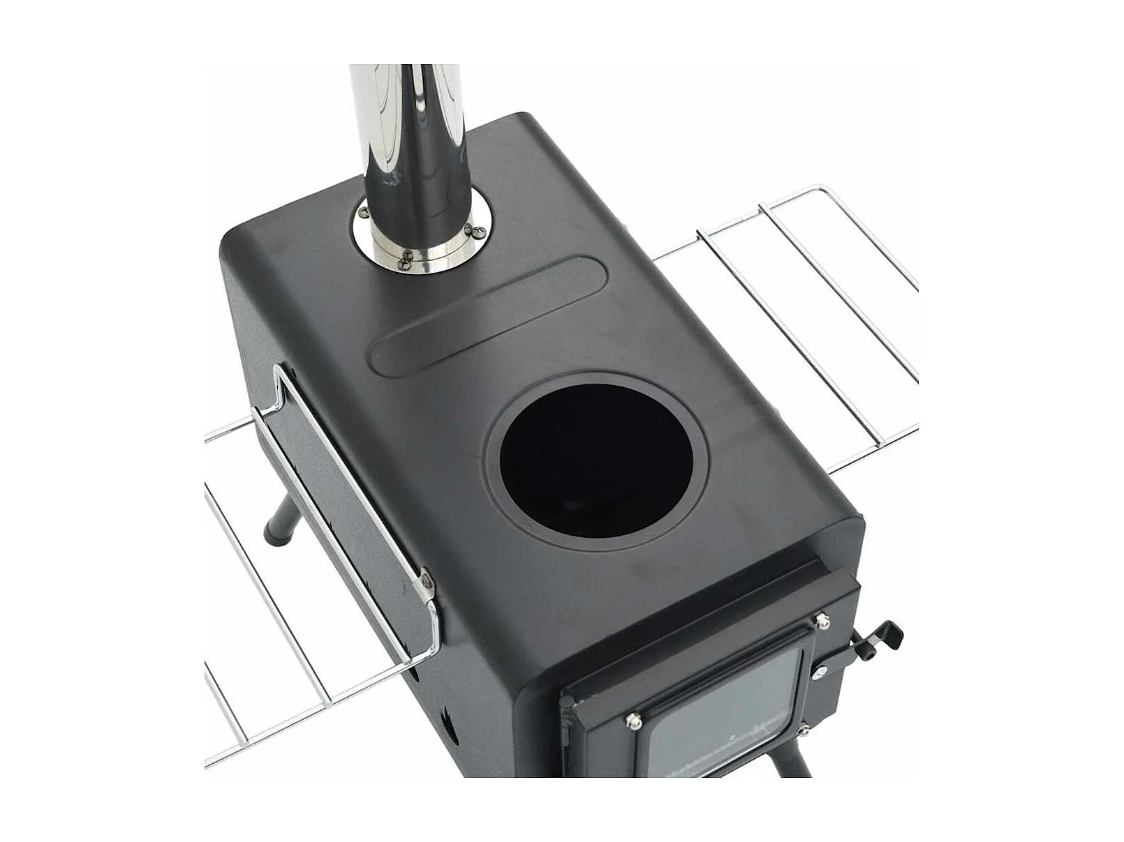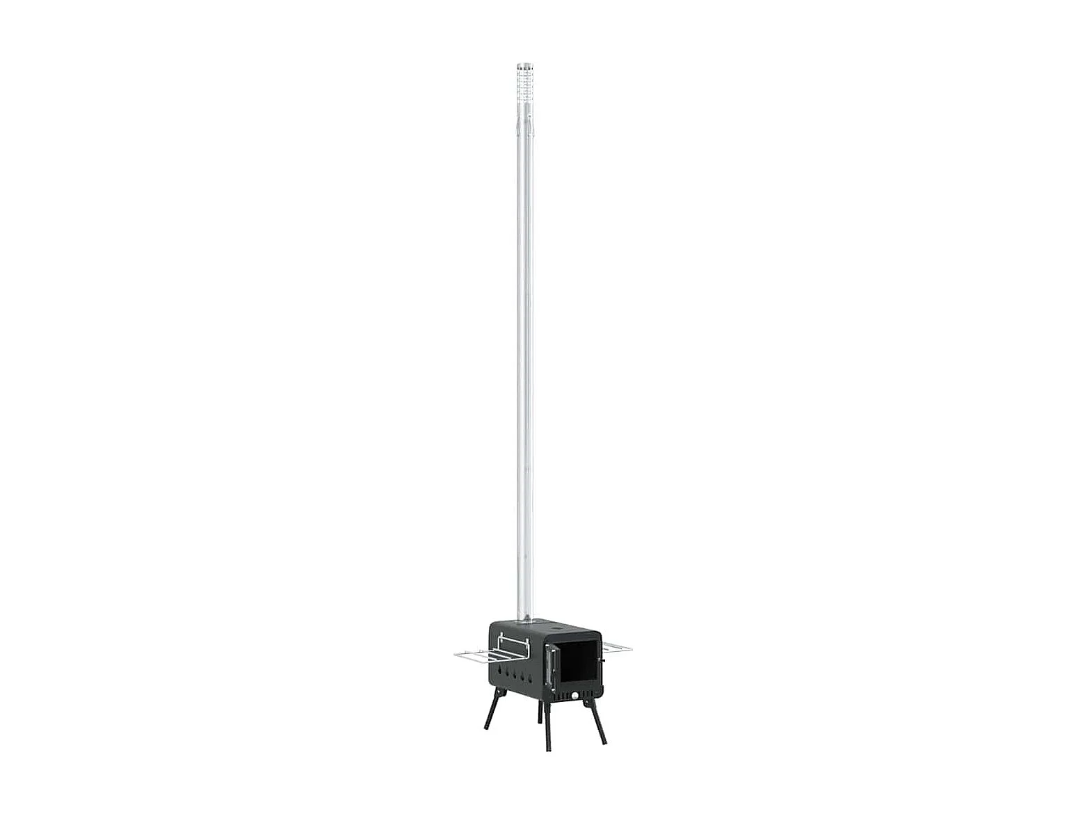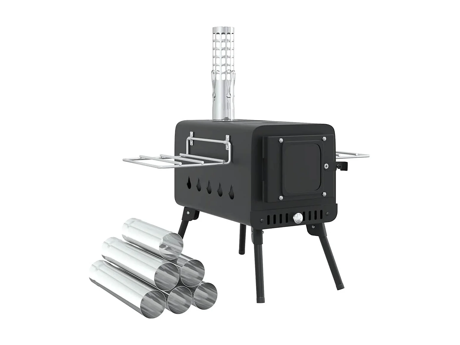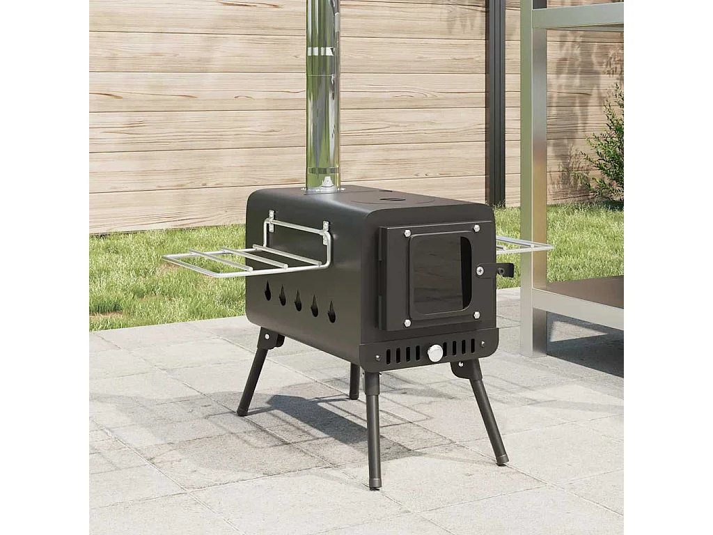 Poêle à bois de tente et cheminée et pieds pliables noir acier