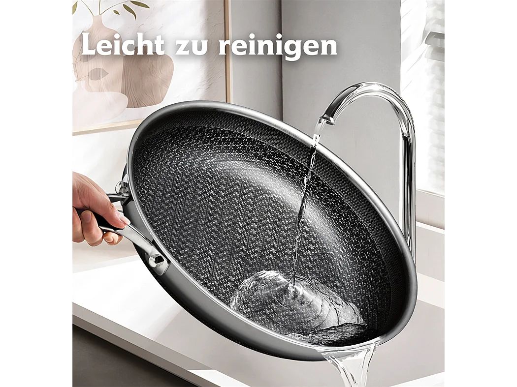 Poêle à frire, 28CM Poêle antiadhésive en nid d'abeille avec couvercle