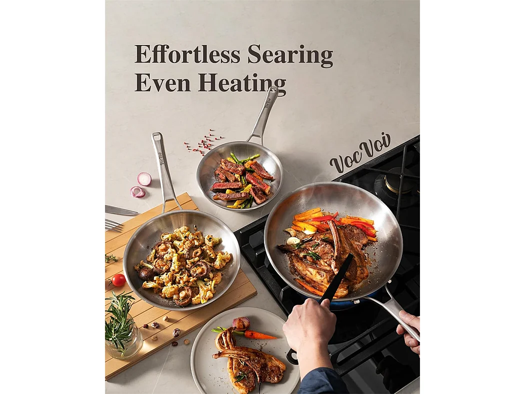 Poêle en acier inoxydable, 28 CM avec couvercle, Poêle en acier inoxydable sans revêtement