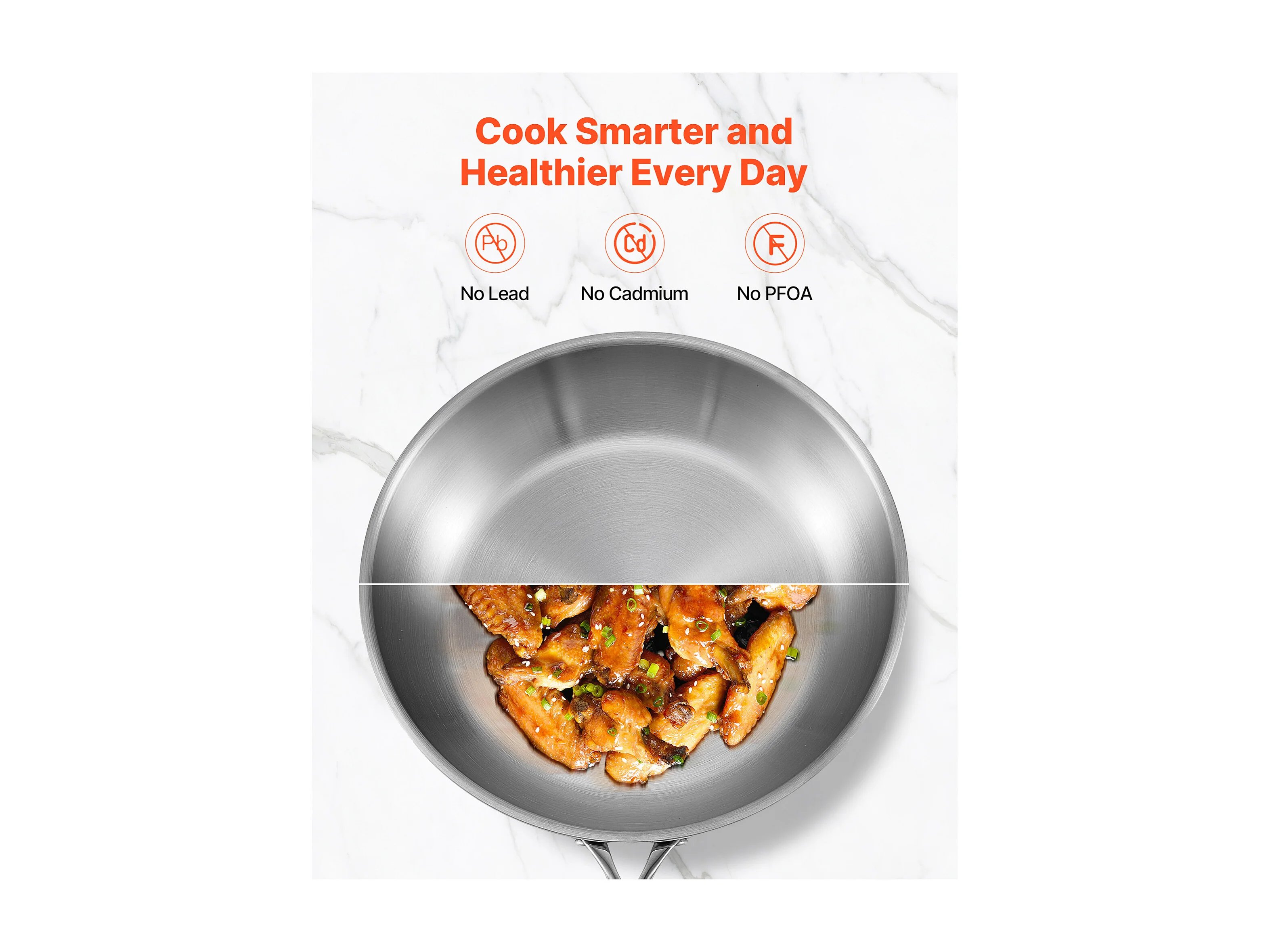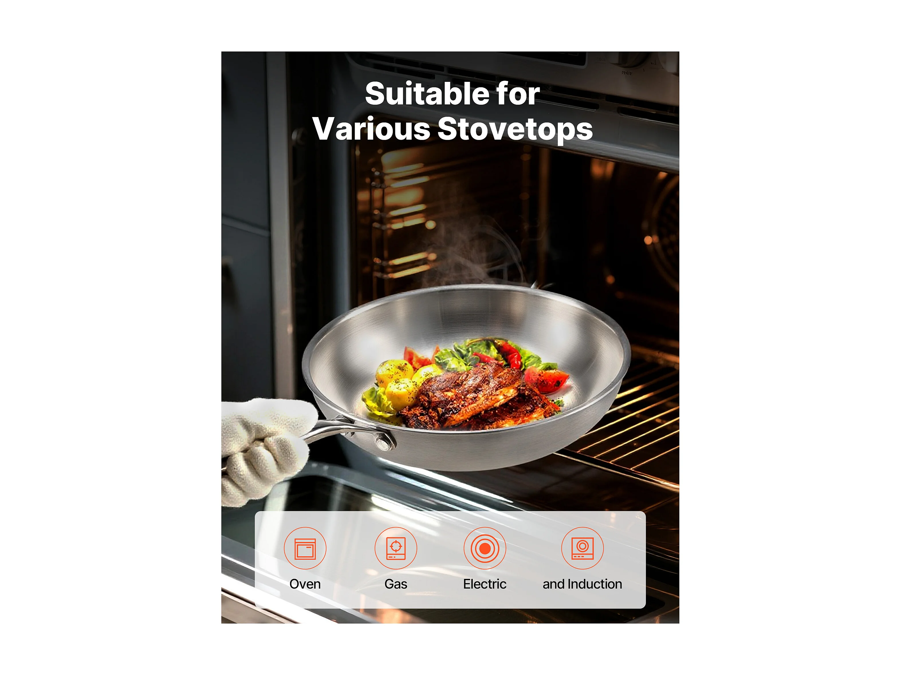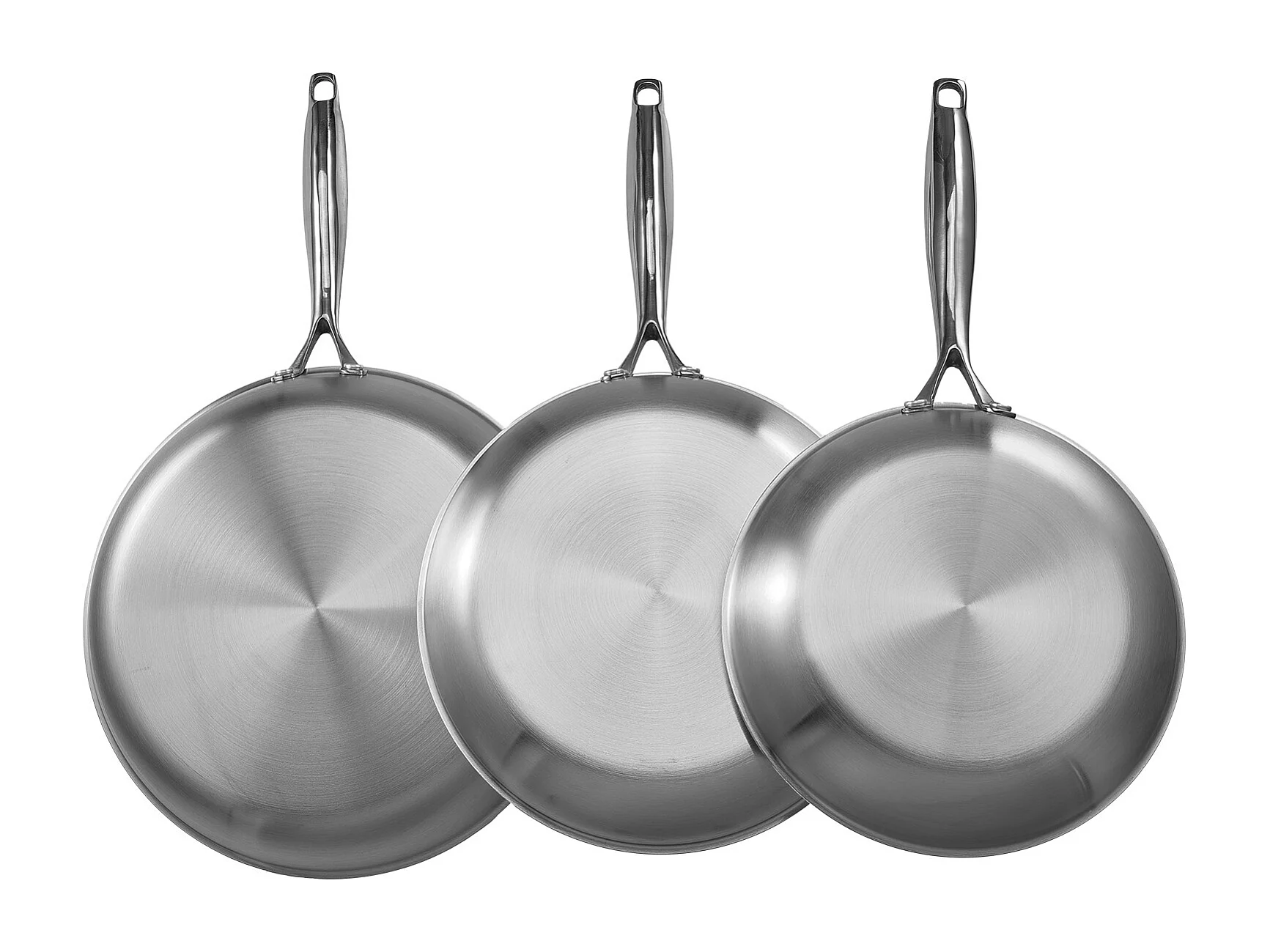 Poêle en Acier Inoxydable SucceBuy, 3PCs 24/28/32 cm, Sauteuse avec Poignée Résistante À la Chaleur, Ustensiles de Cuisine Restaurant, pour Gaz, Argent