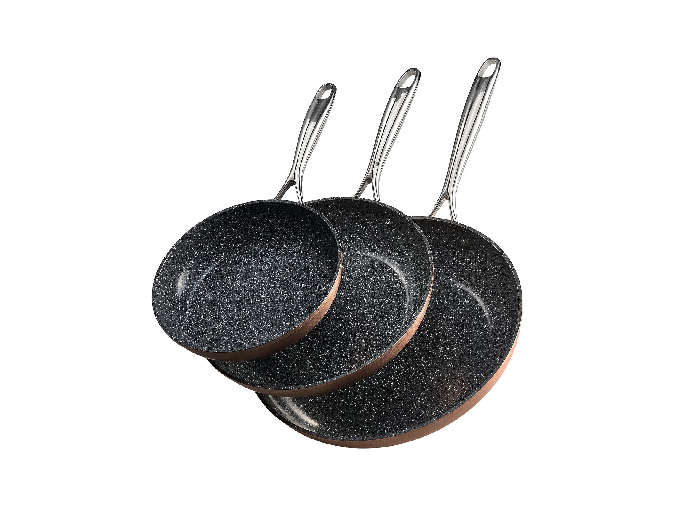 Set de 3 poeles 20-24-26 cm Arthur Martin AM1410 - Acier Inoxydable - Poignée amovible - Tous feux dont induction