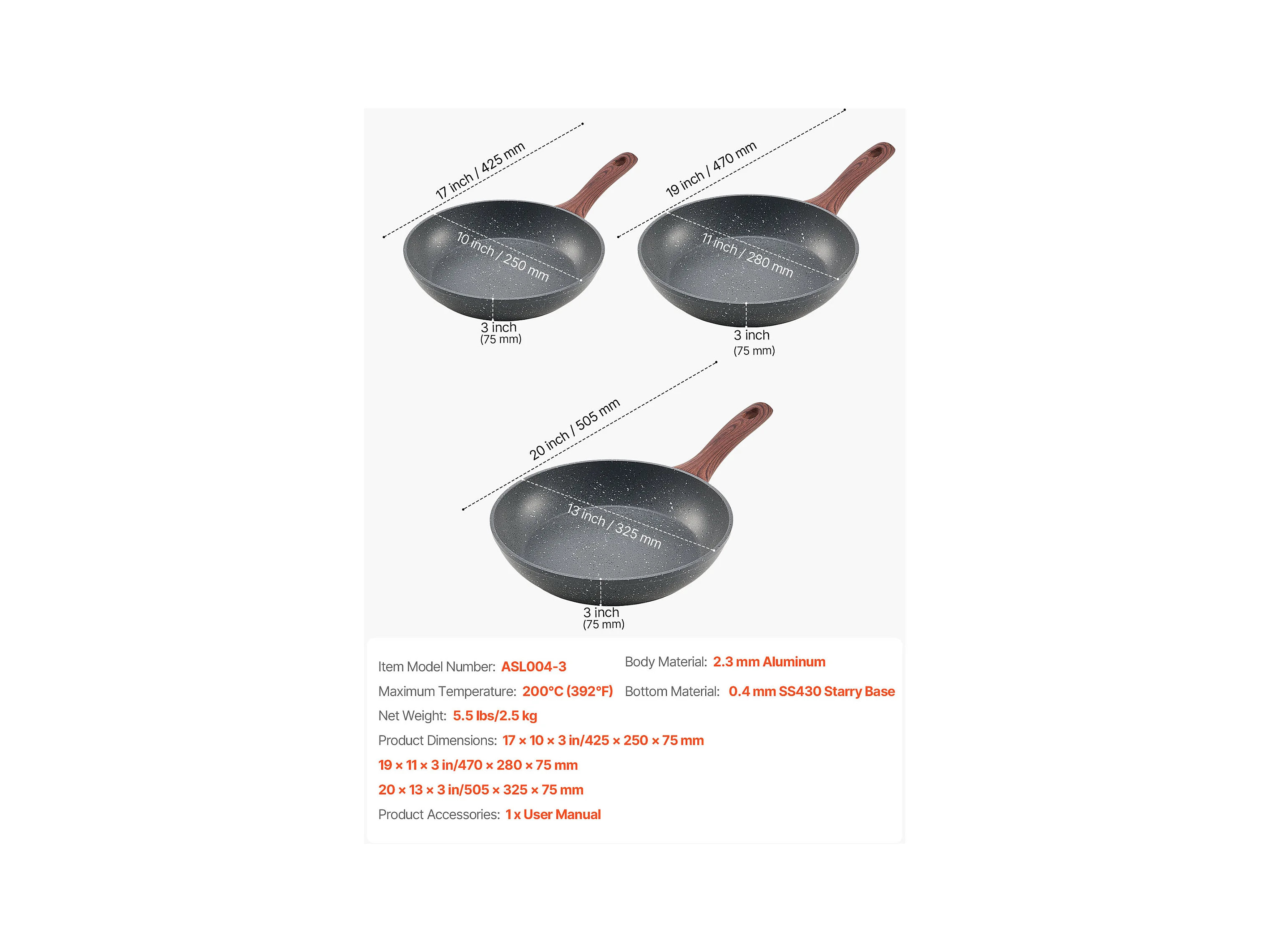 Poêle en Aluminium SucceBuy, 3PCs 20/27/30 cm, Sauteuse en Céramique Antiadhésive avec Poignée Résistante À la Chaleur, pour Gaz, Électrique