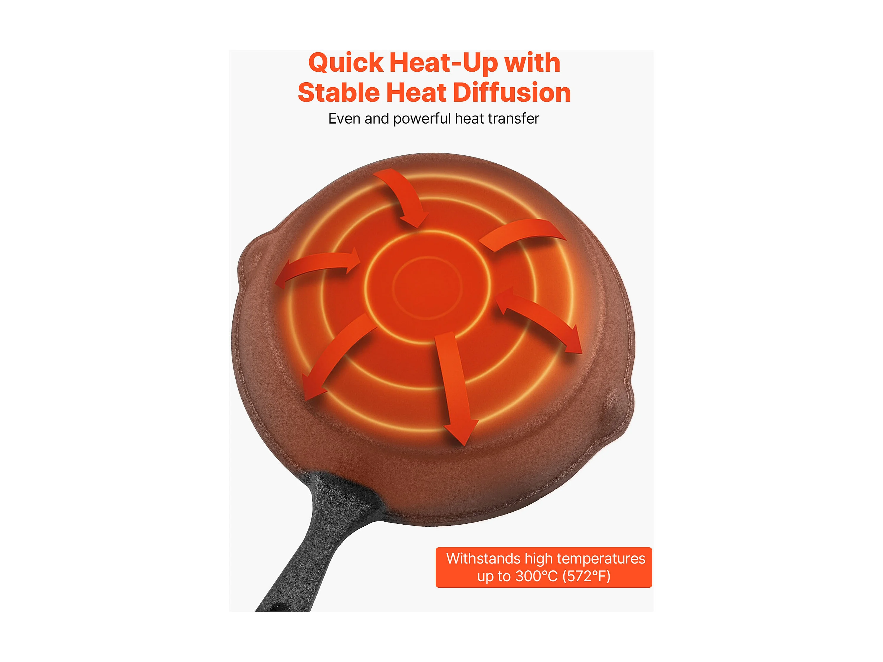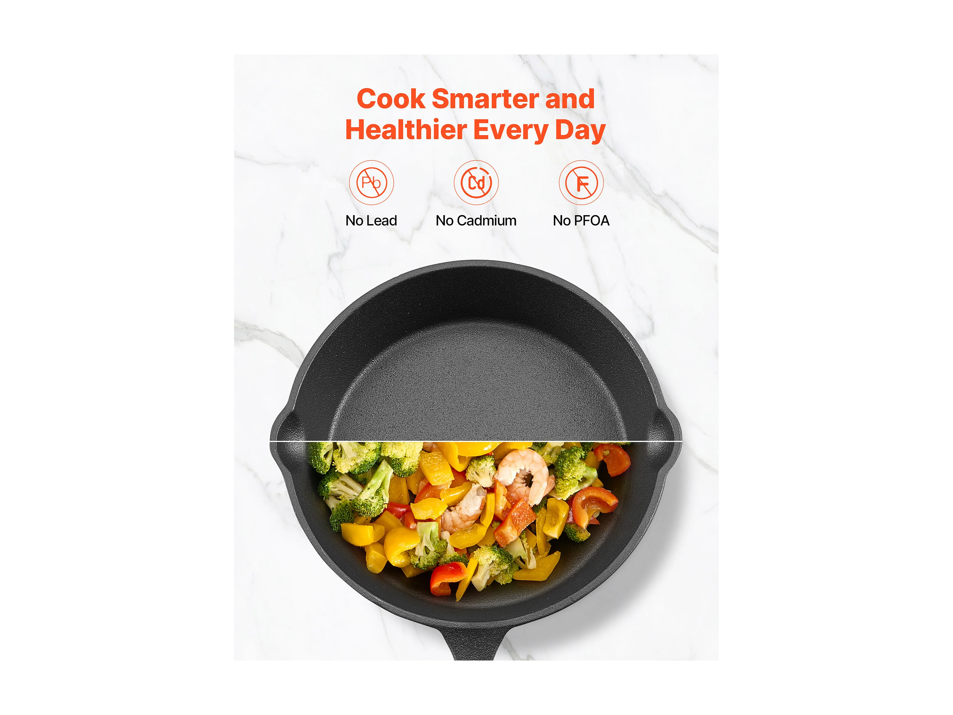 Poêle en Fonte SucceBuy, 3PCs 16 cm/22 cm/26,5 cm, Sauteuse Pré-Assaisonnée avec Poignée Résistante À la Chaleur, pour Four, Gaz, Électrique, Induction, Noir