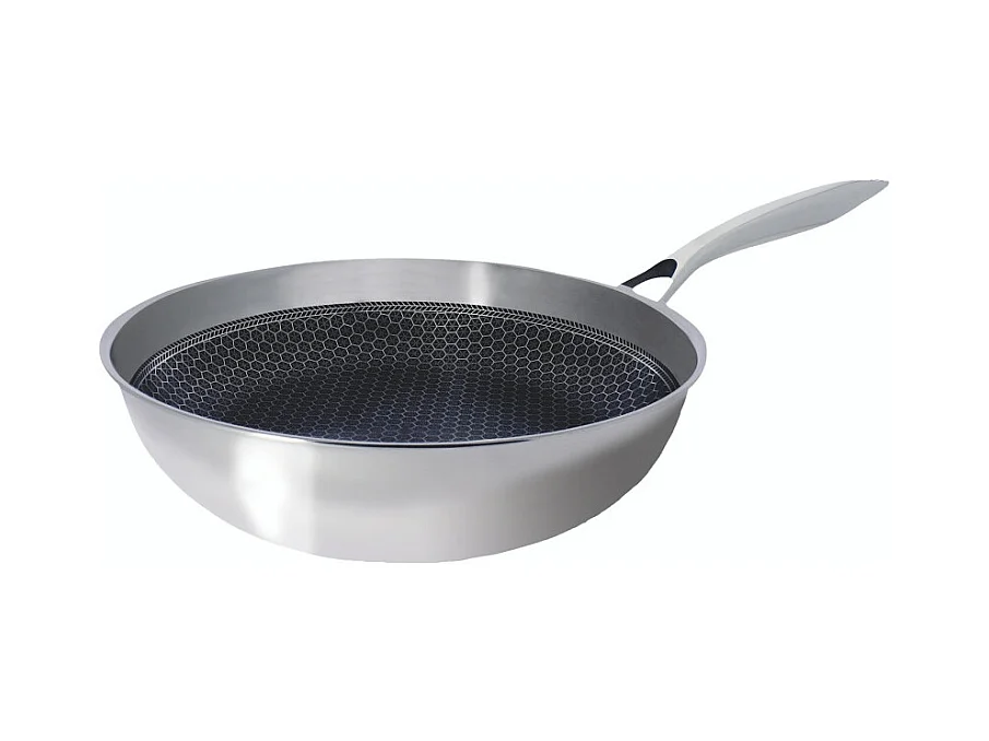 Poêle sauteuse Ogo WOK BLACK CUBE 28 CM en acier inoxydable avec fond nid d'abeille - Tous feux dont induction
