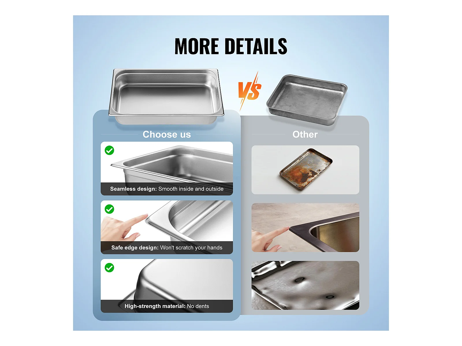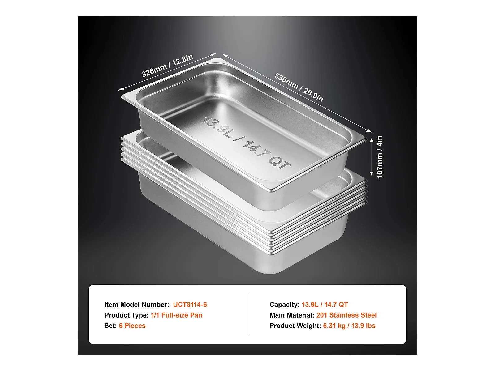 Poêles à Vapeur SucceBuy pour Hôtel Lot de 6 , en Acier Inoxydable, Profondeur 10 cm