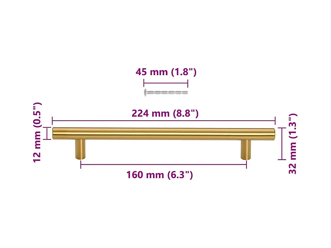 Poignées d'armoire 10 pcs doré 224 mm acier inoxydable