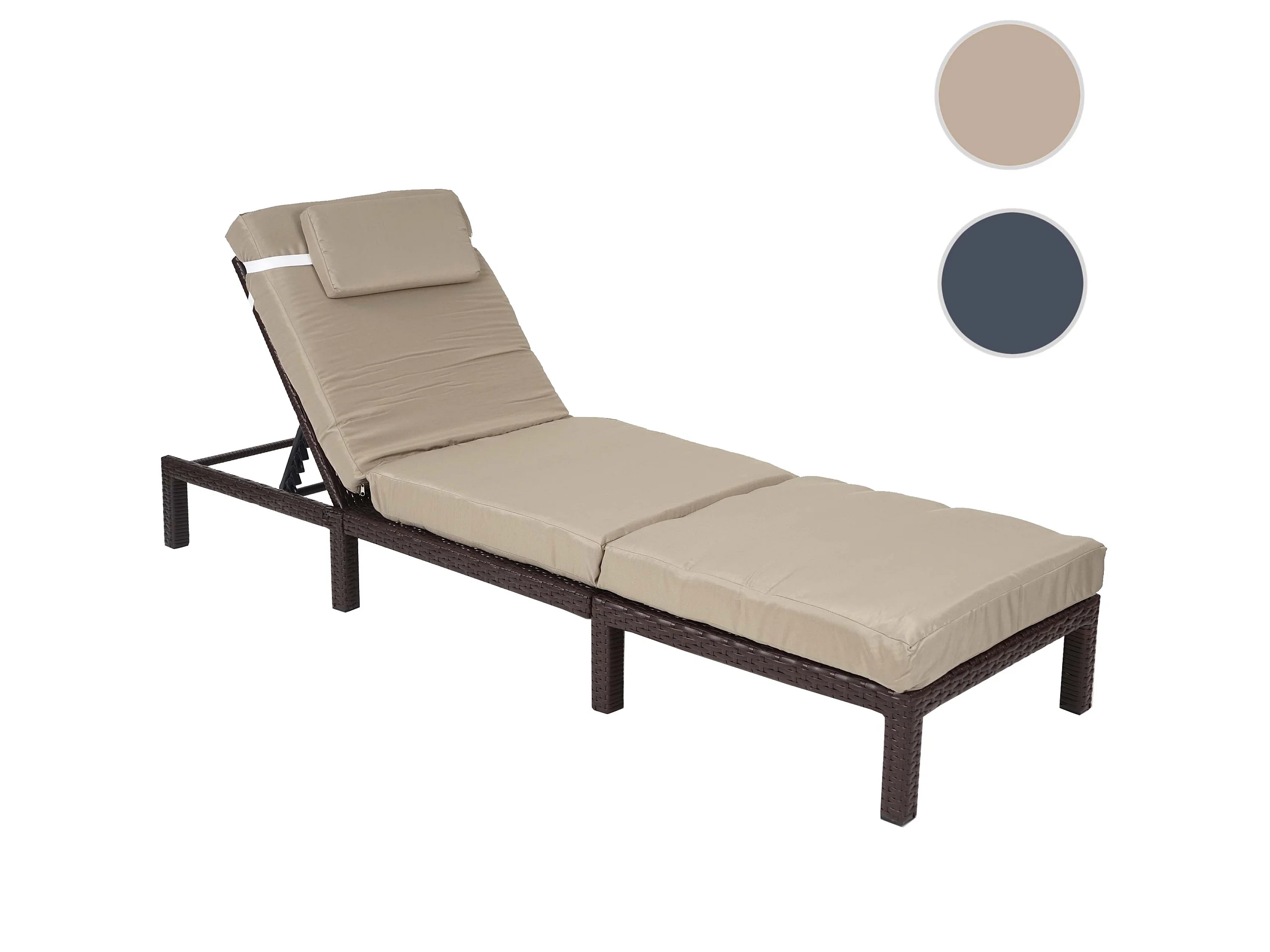 Poly-Rattan Bain de soleil MCW-A51 Premium, Premium marron, coussin crème