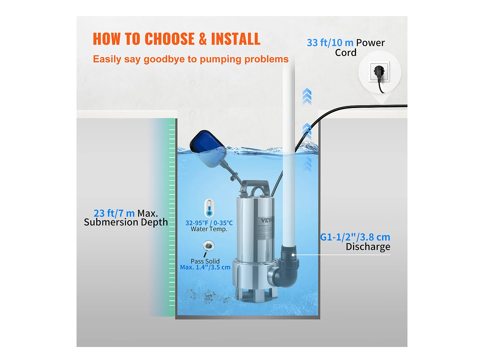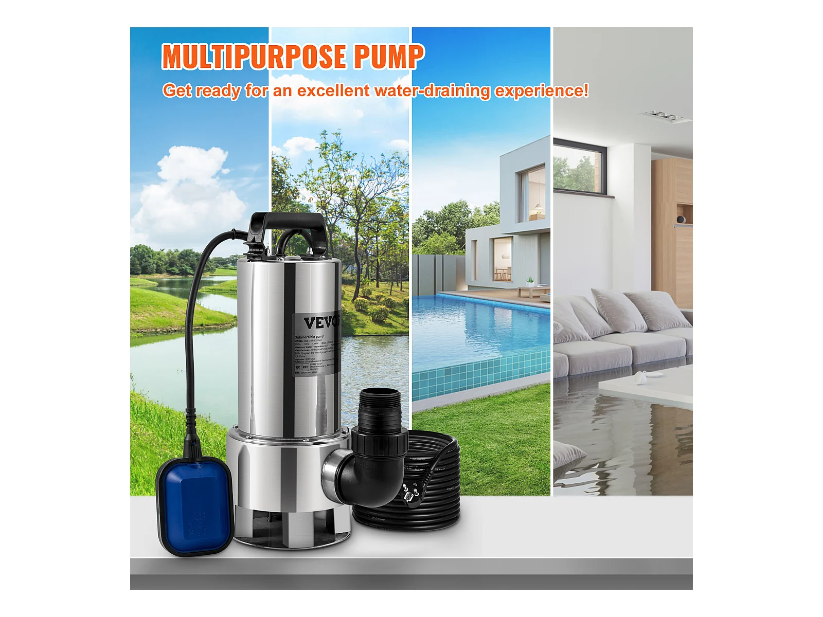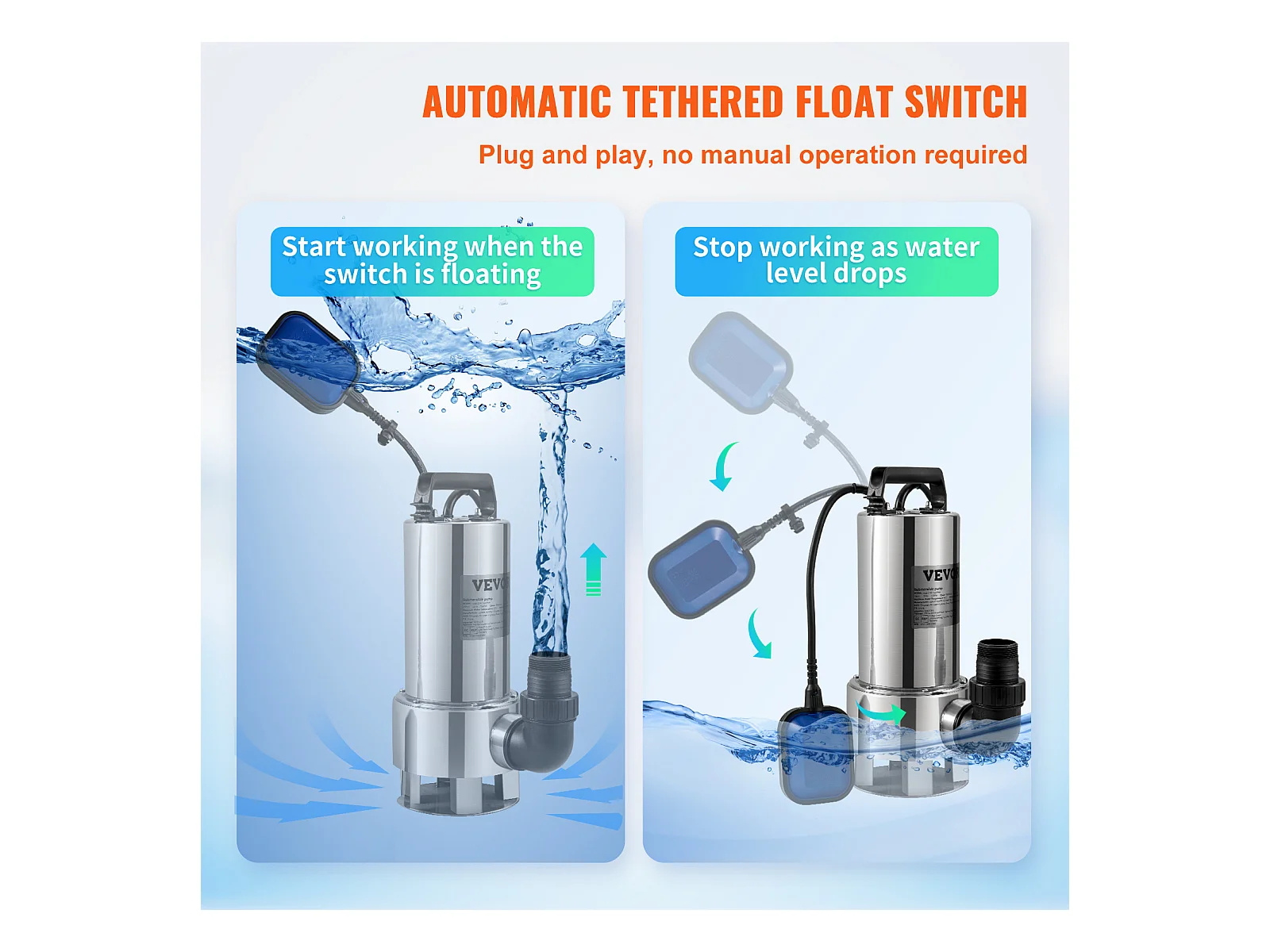 Pompe à Eau SucceBuy Submersible 2200W SucceBuy, pour Les Eaux Sales, Les Inondations, Les Piscines, Les Étangs de Jardin