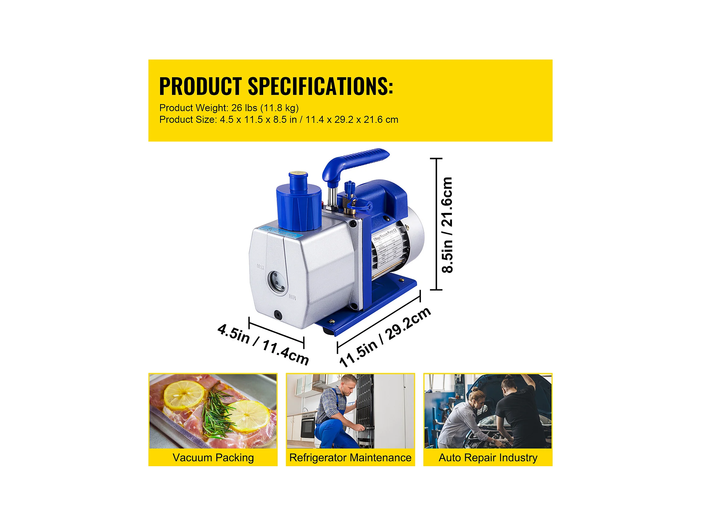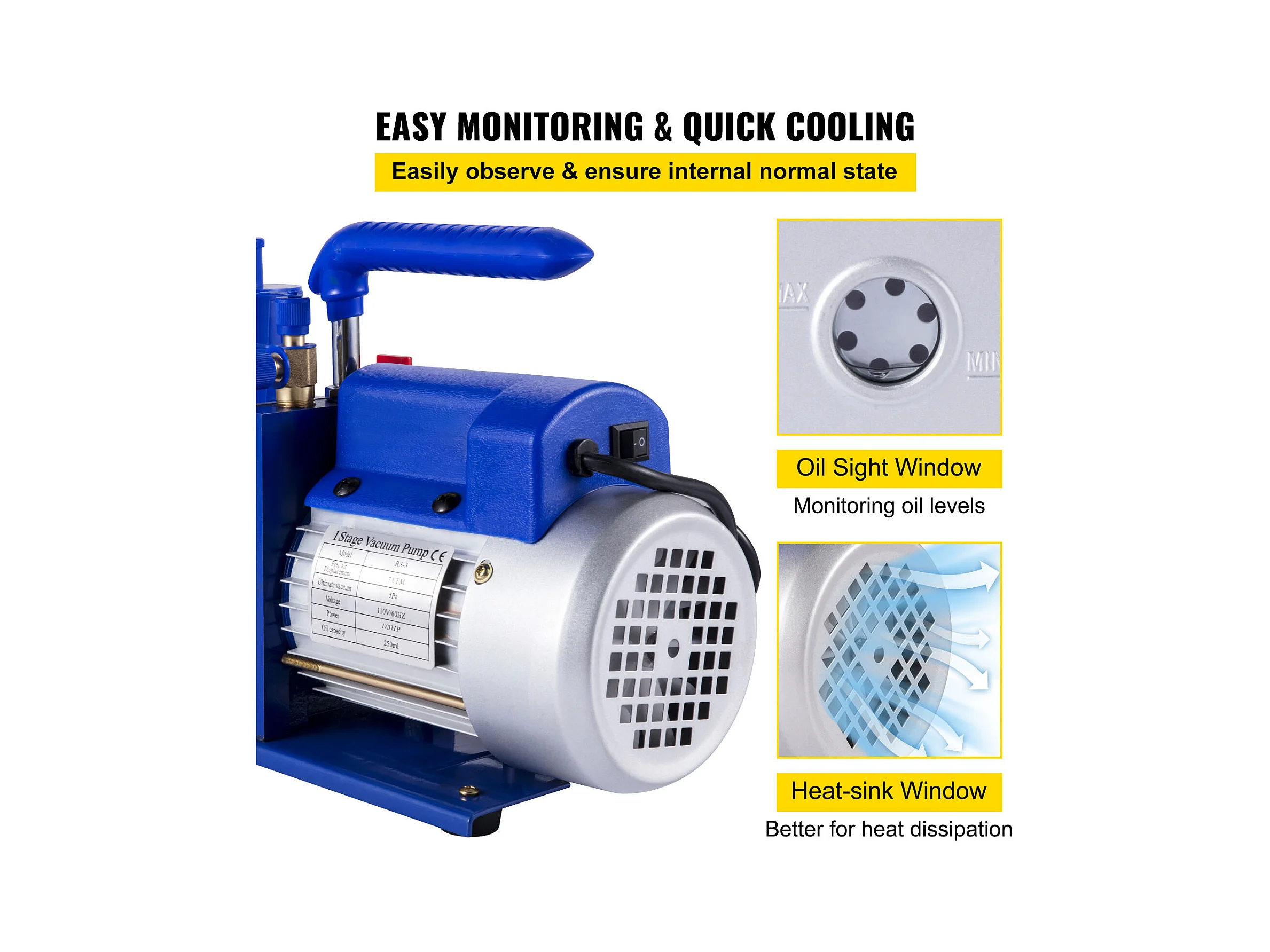 Pompe à Vide Climatisation SucceBuy, 7 CFM, 1/2 CV, Idéale pour les Applications CVC Profondes
