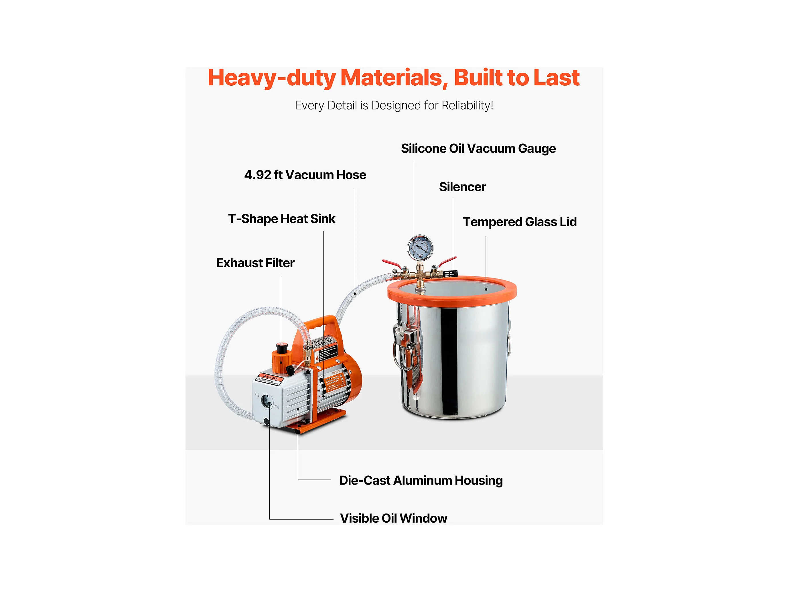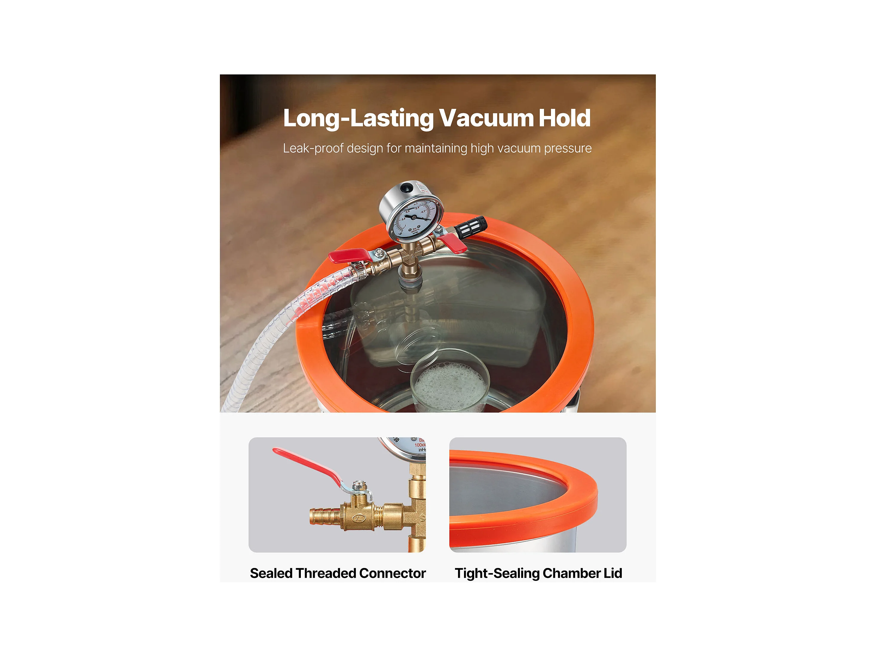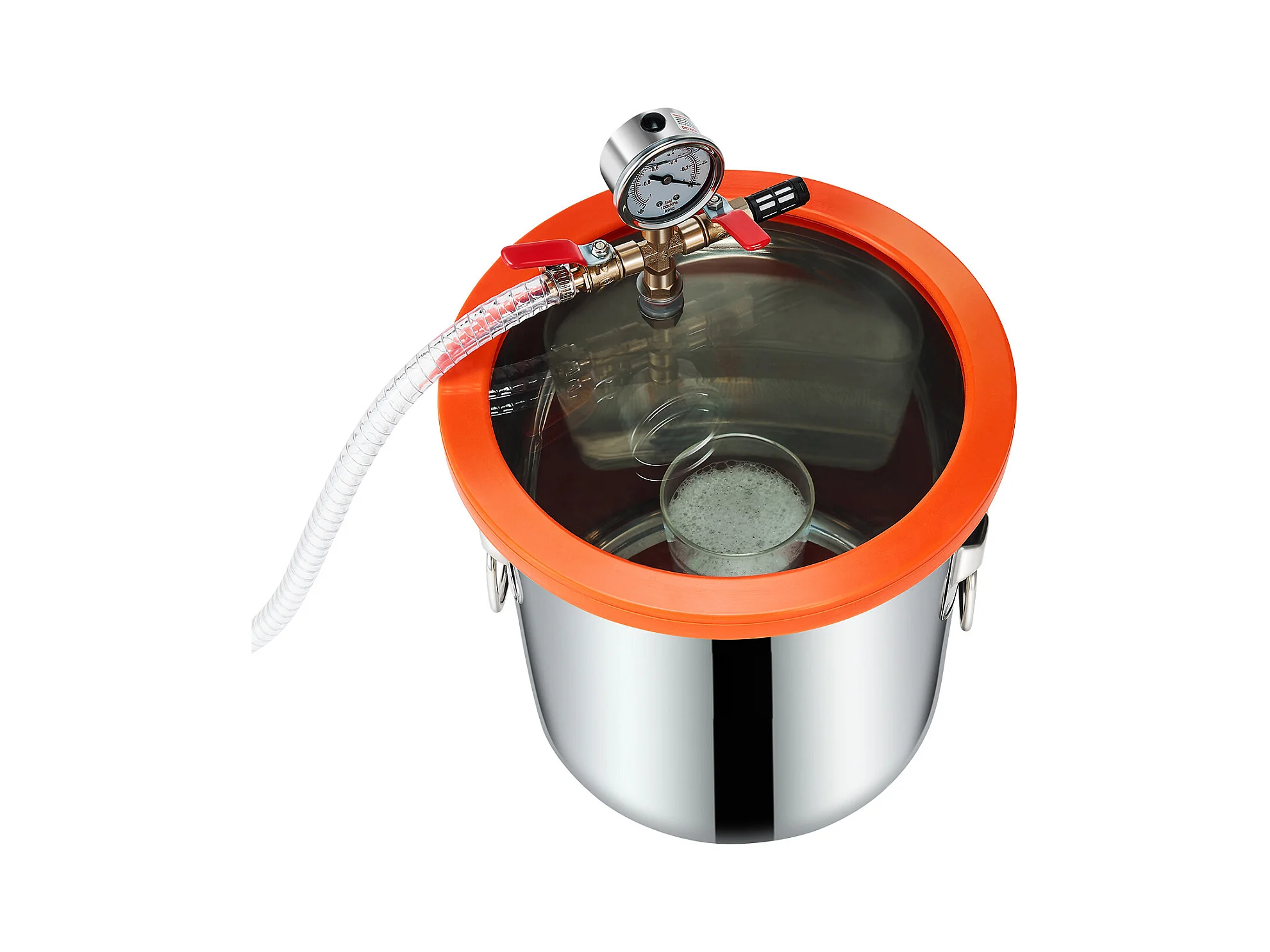 Pompe à Vide SucceBuy de 11,36 L avec Pompe, 99 L/min, en Acier Inoxydable, Kit de Chambre de Dégazage, Couvercle en Verre Trempé, Tuyau de 1,5 m