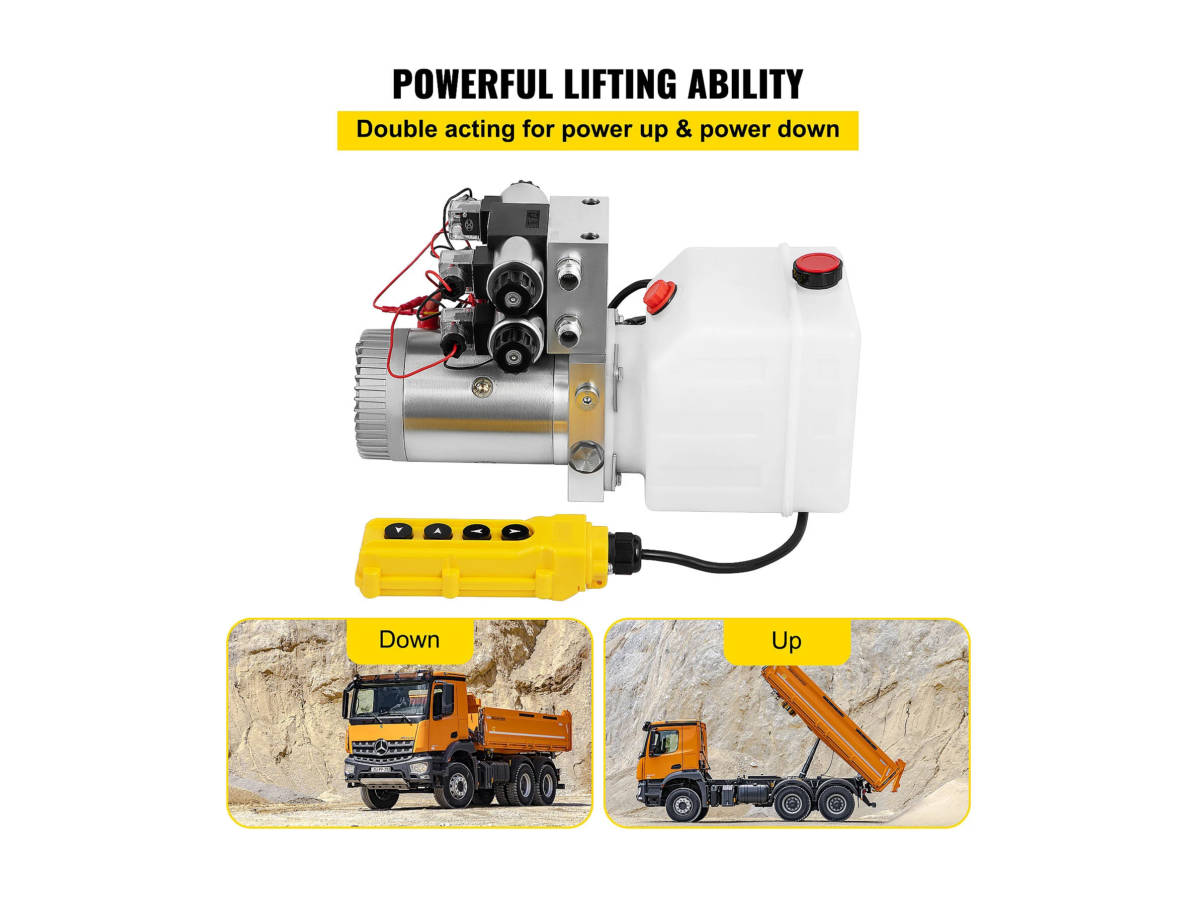 Pompe Hydraulique SucceBuy Groupe Hydraulique à Double Effet 12 Volts DC Réservoir de 4.5L