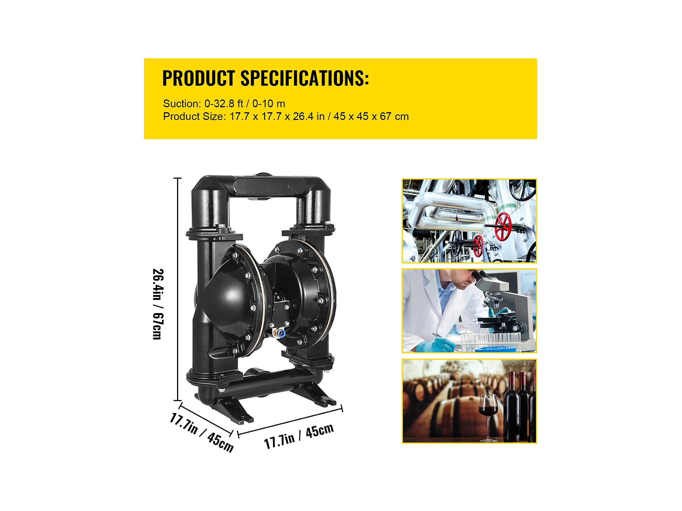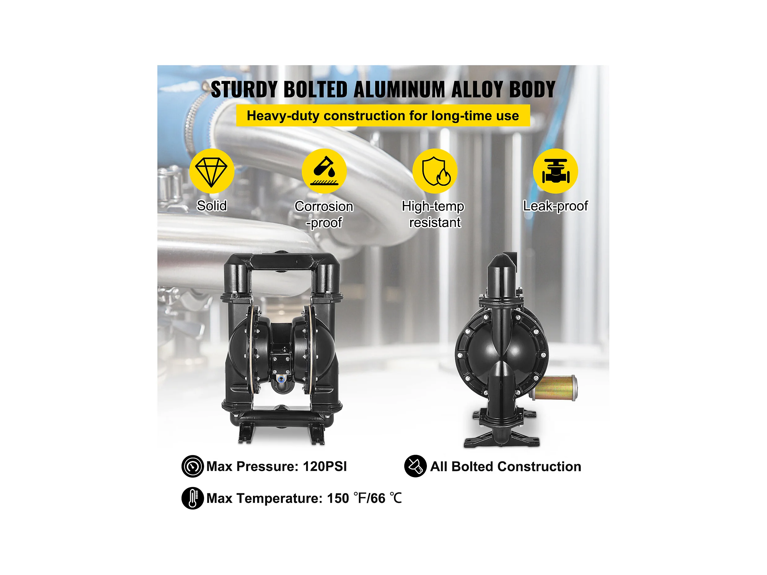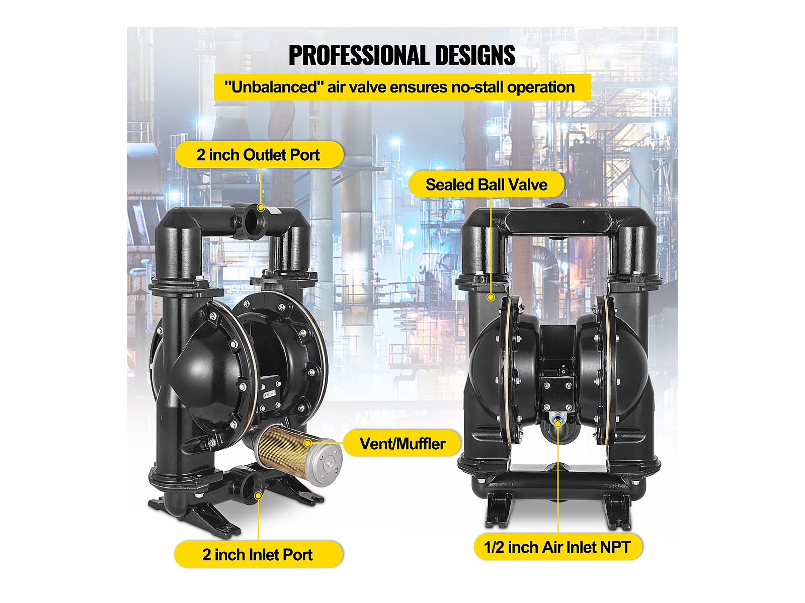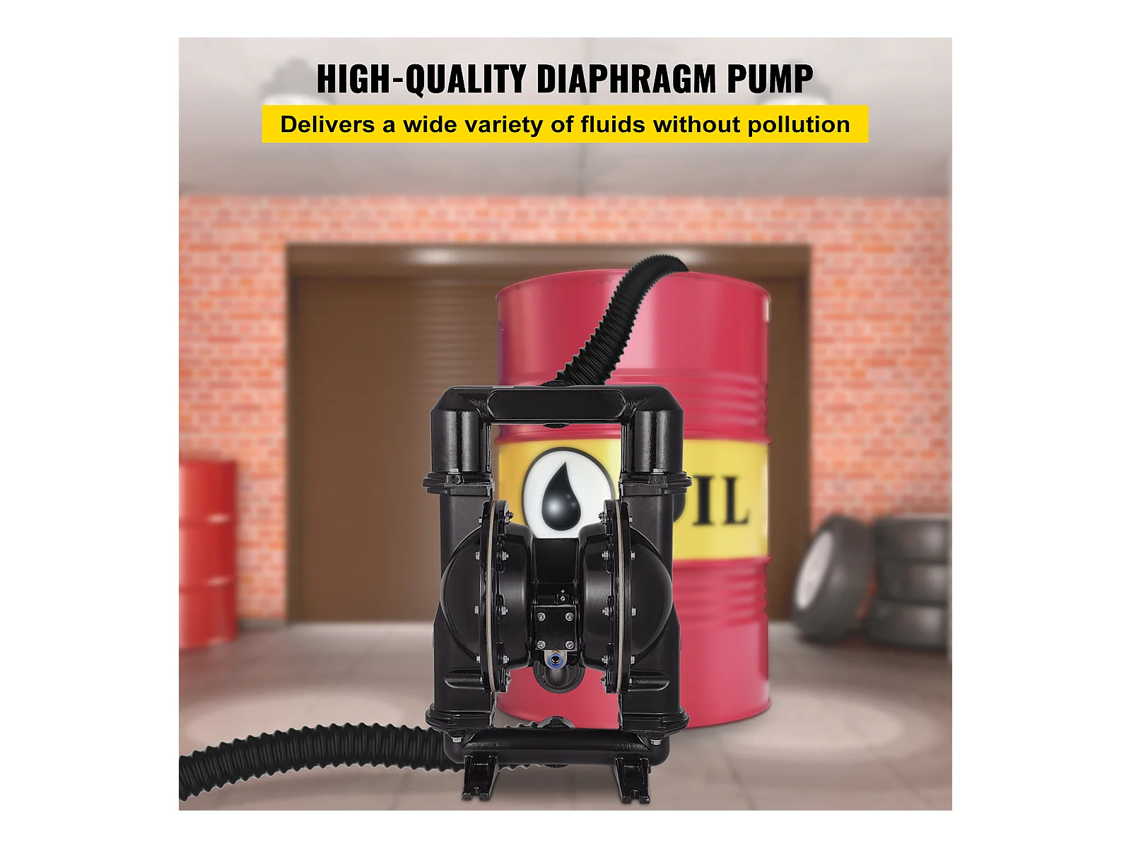 Pompe SucceBuy à Double Membrane Pneumatique 75 GPM, Entrée et Sortie 5.08cm, Pompe de Transfert à Membrane en Nitrile pour Pétrole, Diesel, Huile
