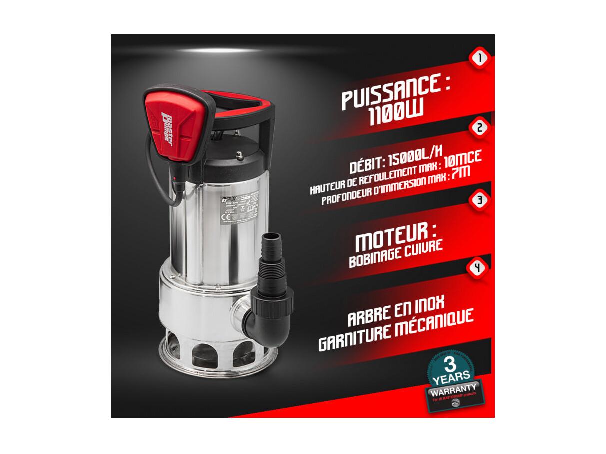 Pompe vide caves eaux chargées 1100W inox - Master Pumps