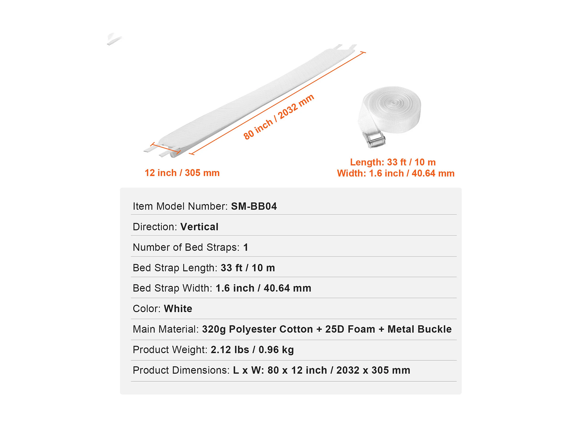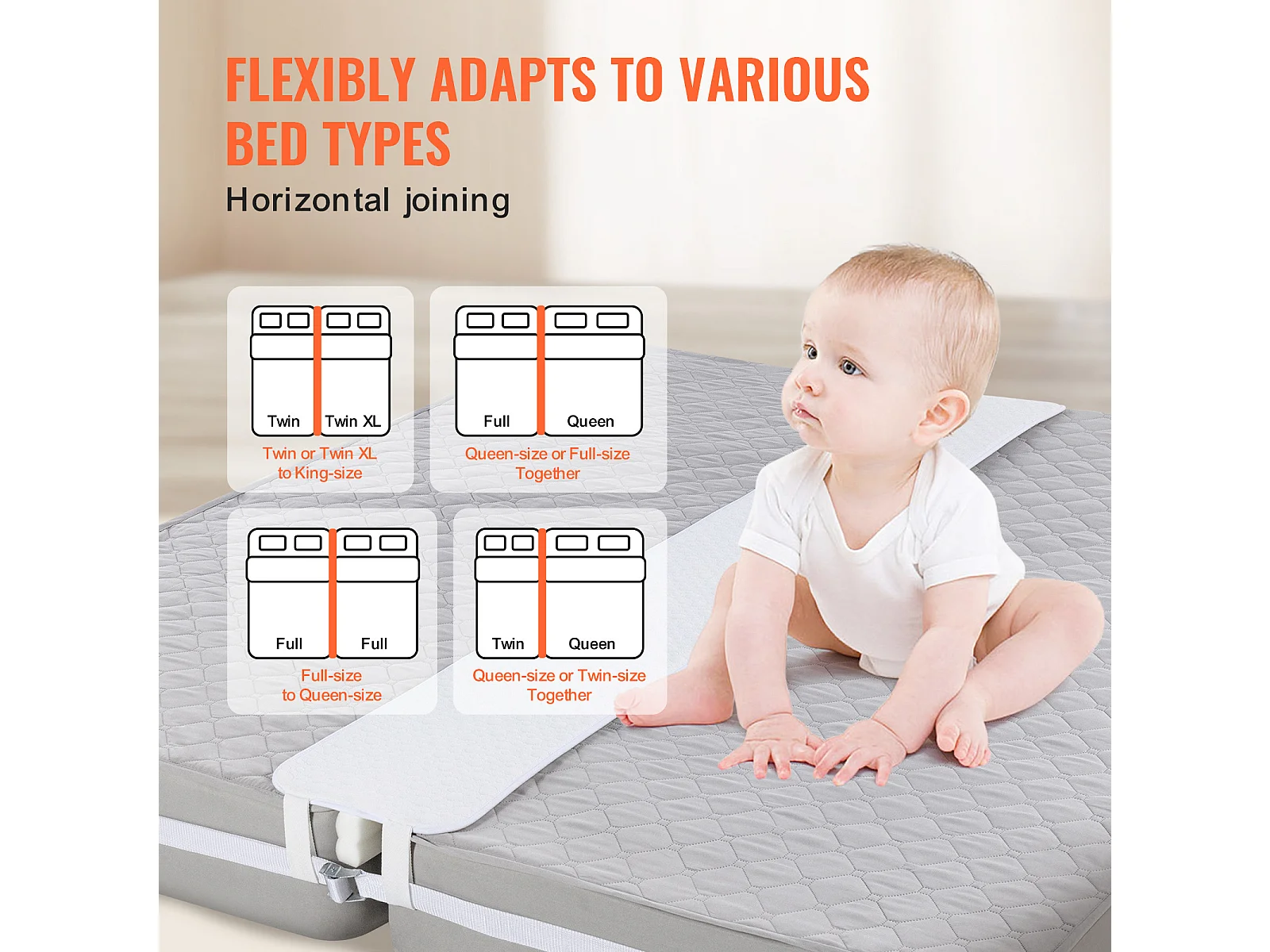 Pont de Lit 20,32 x 30,5 cm SucceBuy, Kit de Convertisseur de Lit Double à King Size, avec Sangle à Boucle en Métal, Mousse à Mémoire de Forme 25D
