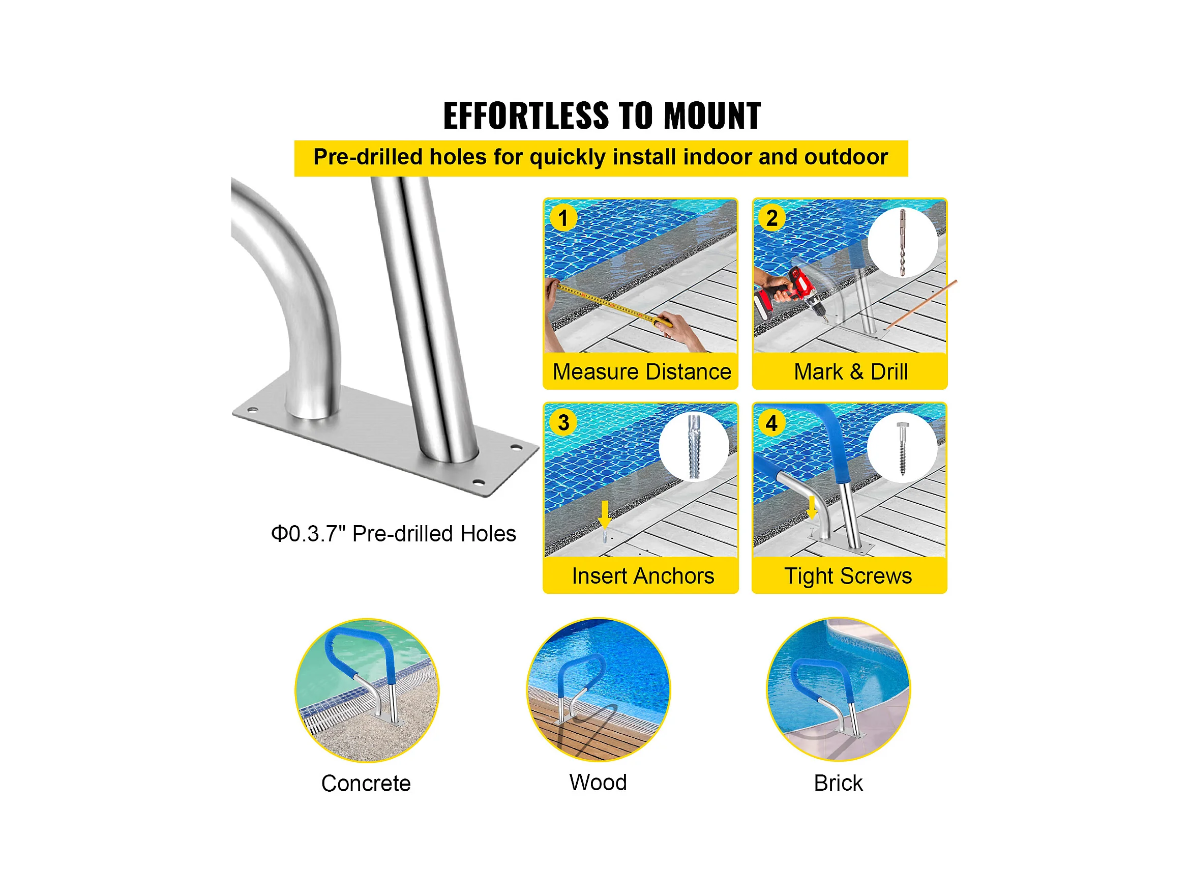 Rampe de Piscine SucceBuy, Rampe en Acier Inoxydable avec Plaque de Base, pour Piscines