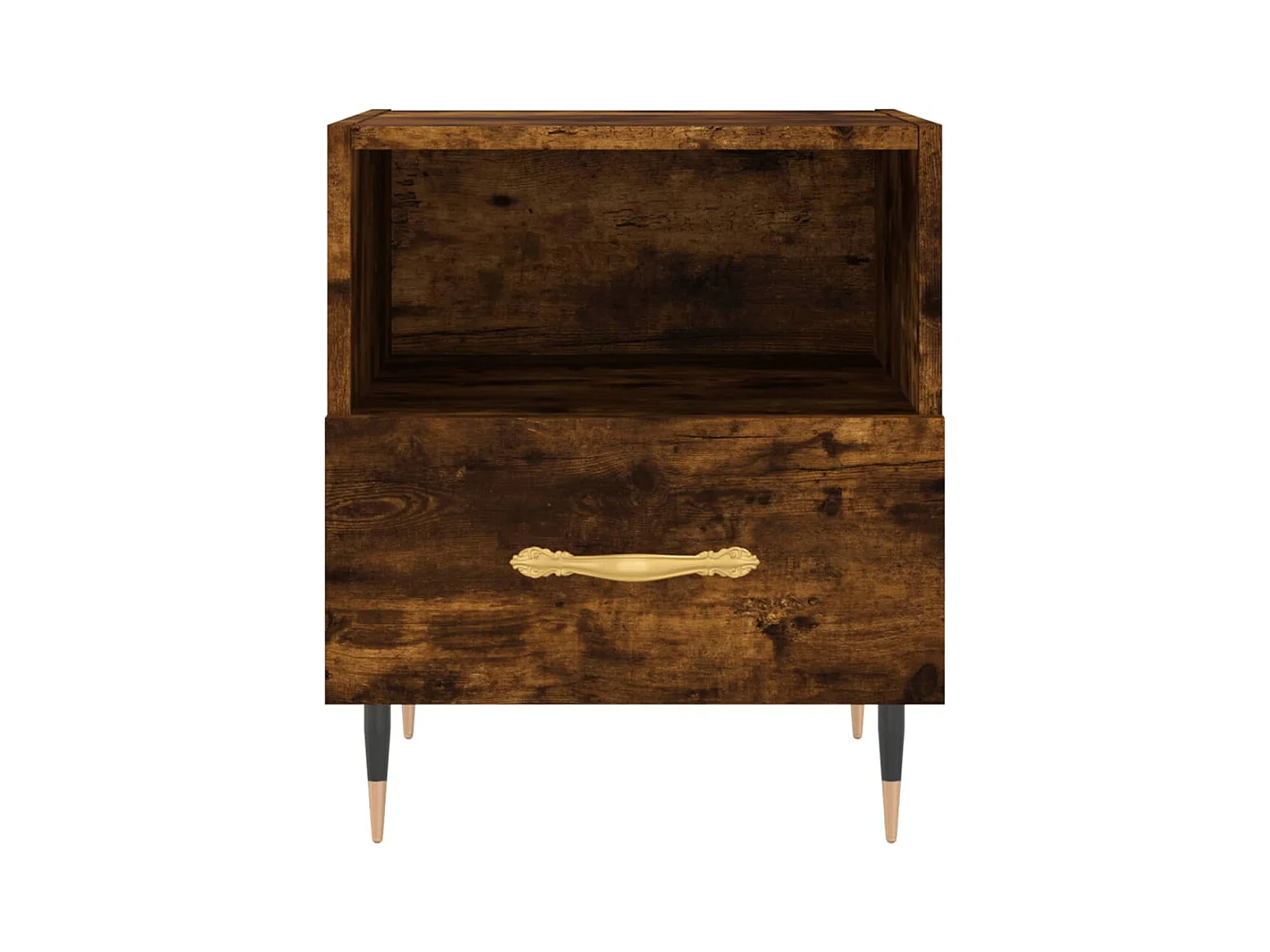Kutztown Table de chevet avec pieds en bois Chêne fumé 40x35x50 cm