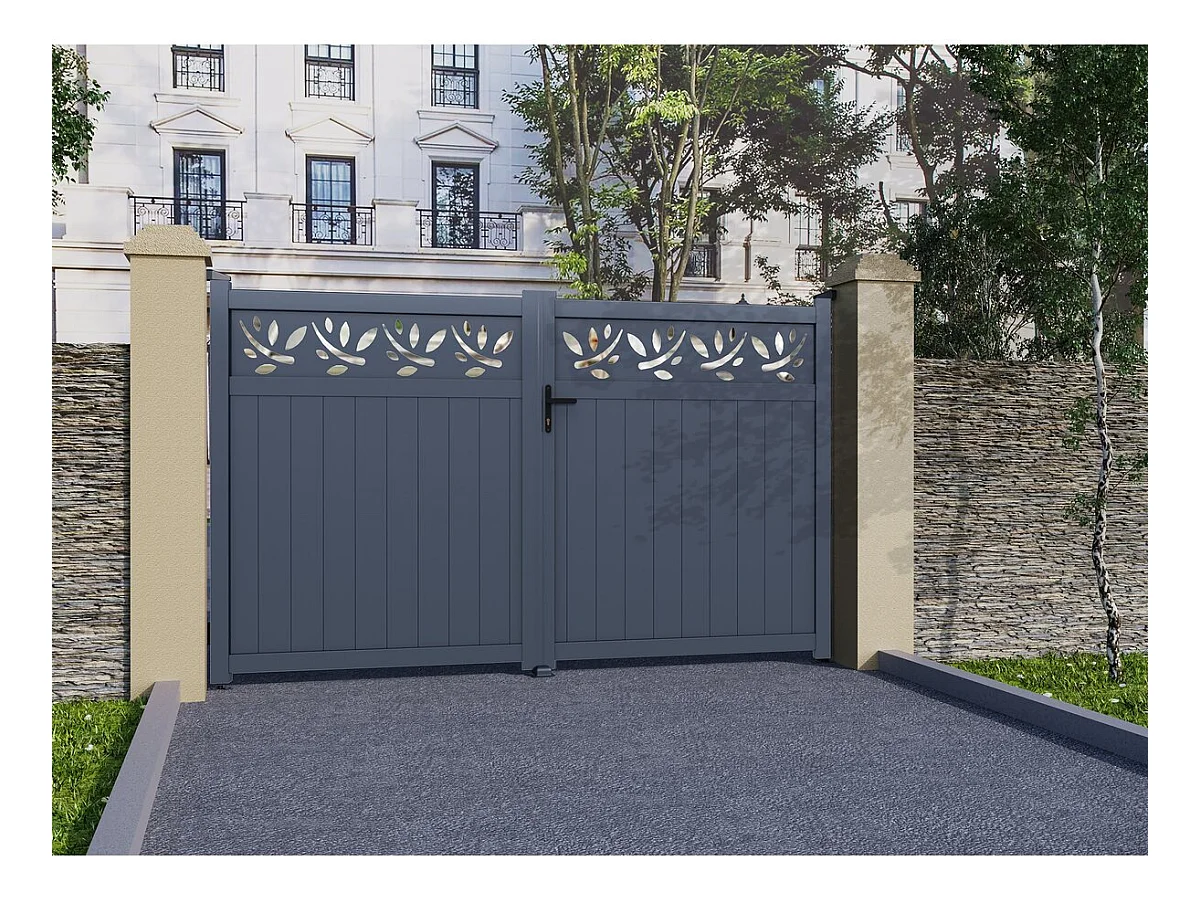 Portail aluminium semi-ajouré à motif "Maya" - 340 x 180 cm - Gris