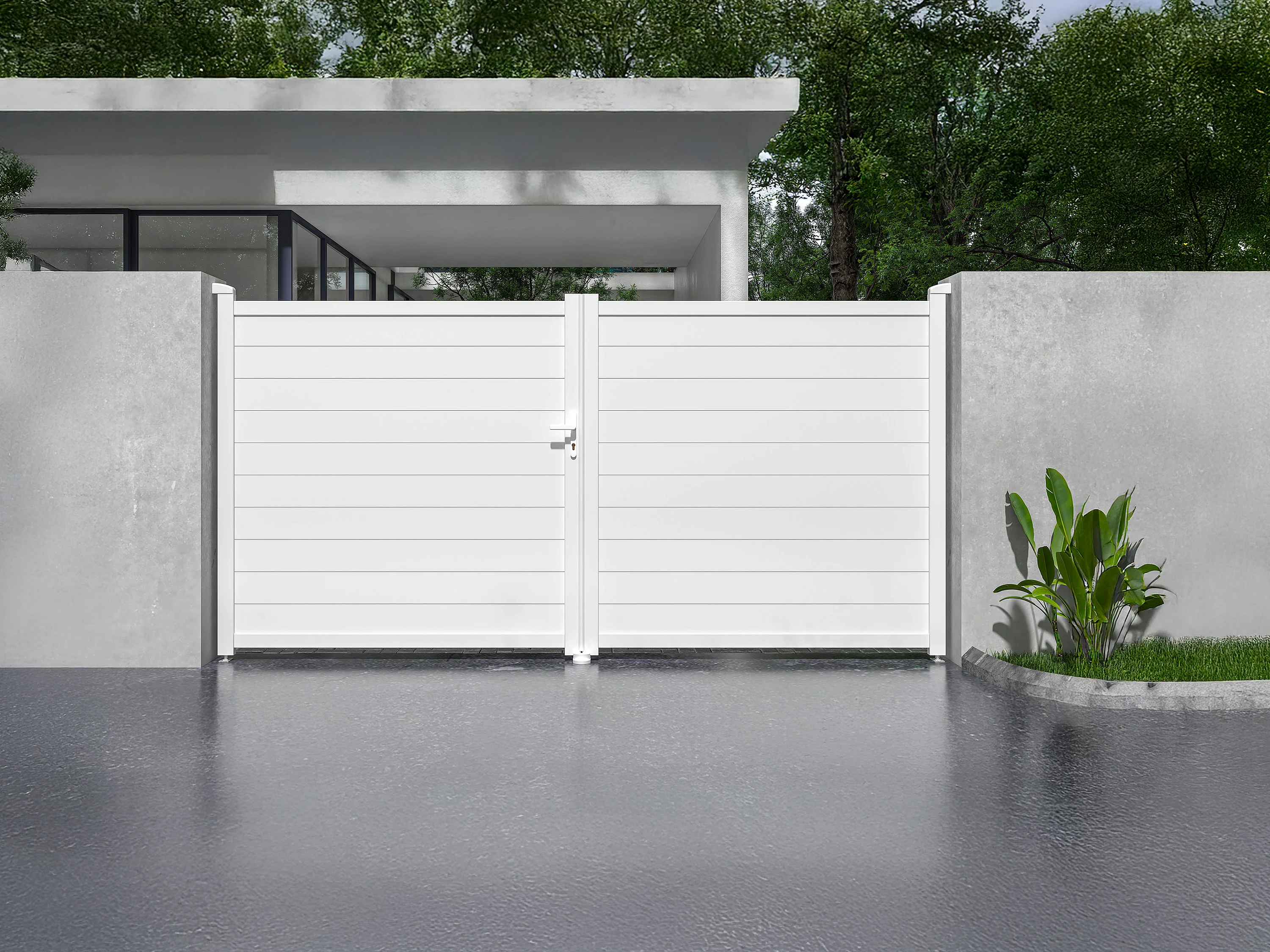 Portail battant aluminium plein L355 x H181 cm blanc - NAZARIO