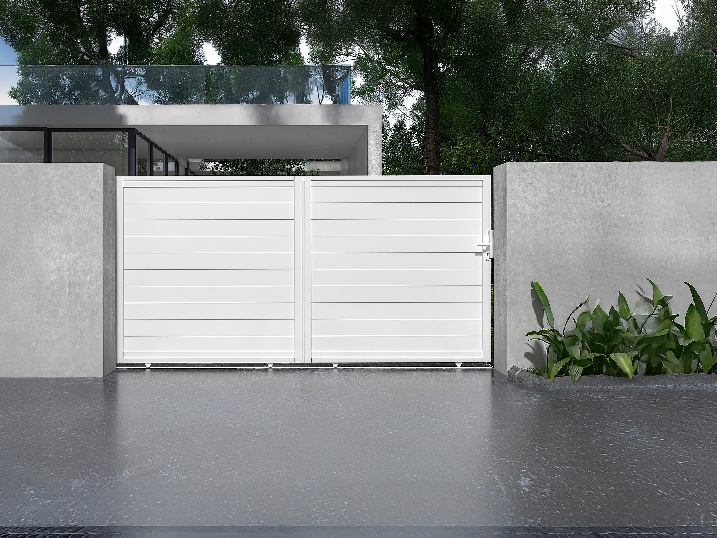 Portail coulissant aluminium plein L374 x H180 cm blanc - NAZARIO