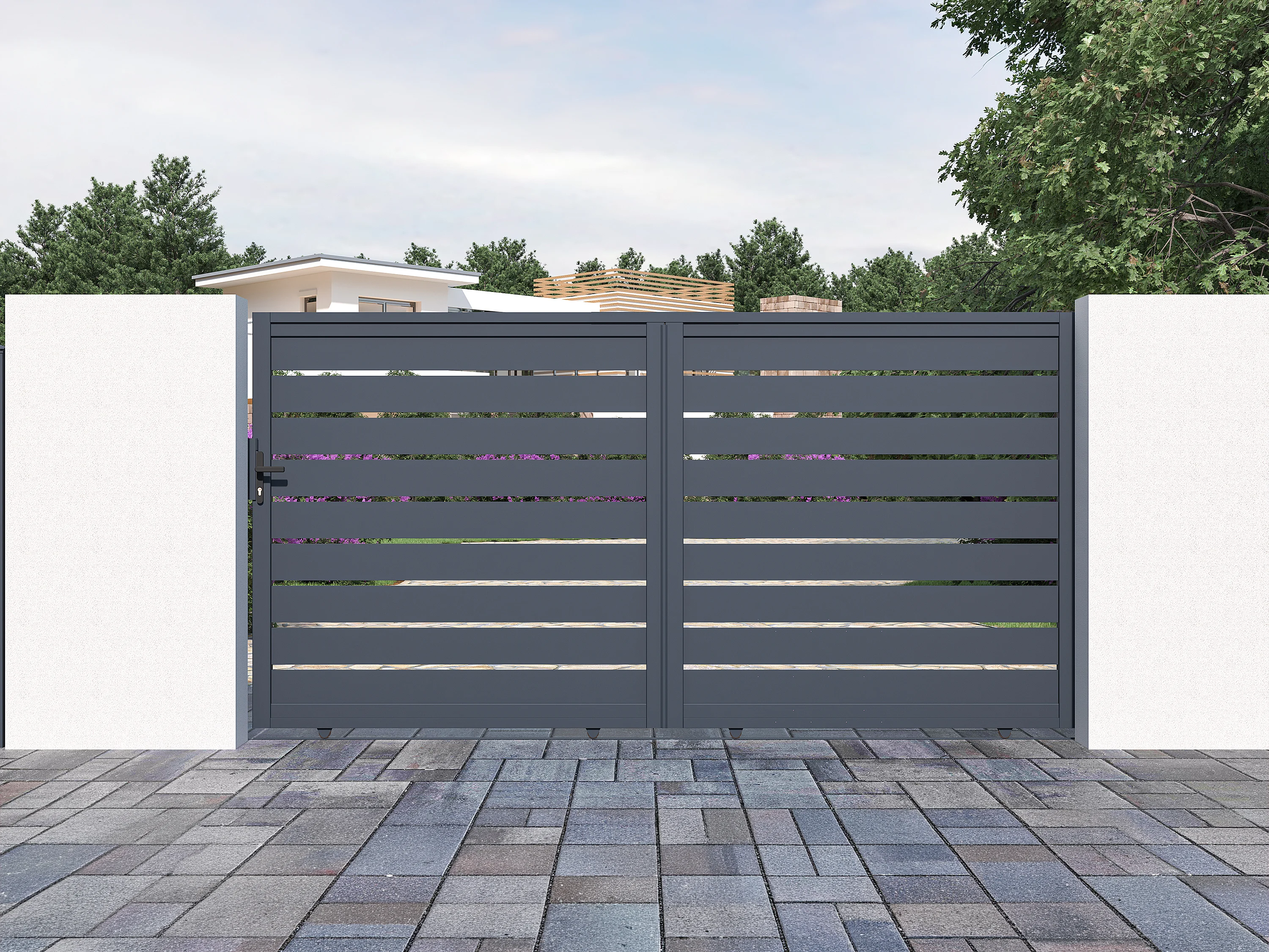 Portail coulissant aluminium ajouré L374 x H180 cm anthracite - PRIMO