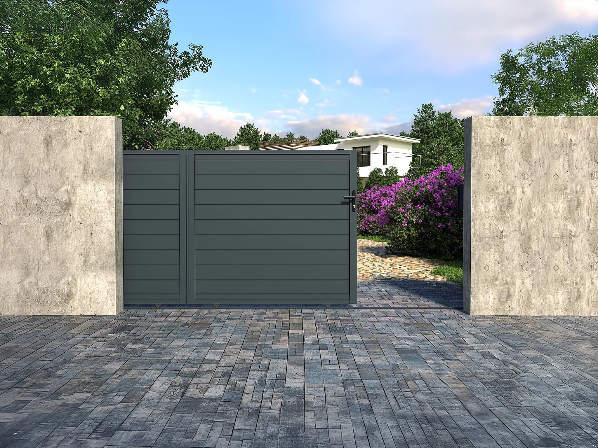 Portail coulissant aluminium plein L374 x H165 cm anthracite - NAZARIO
