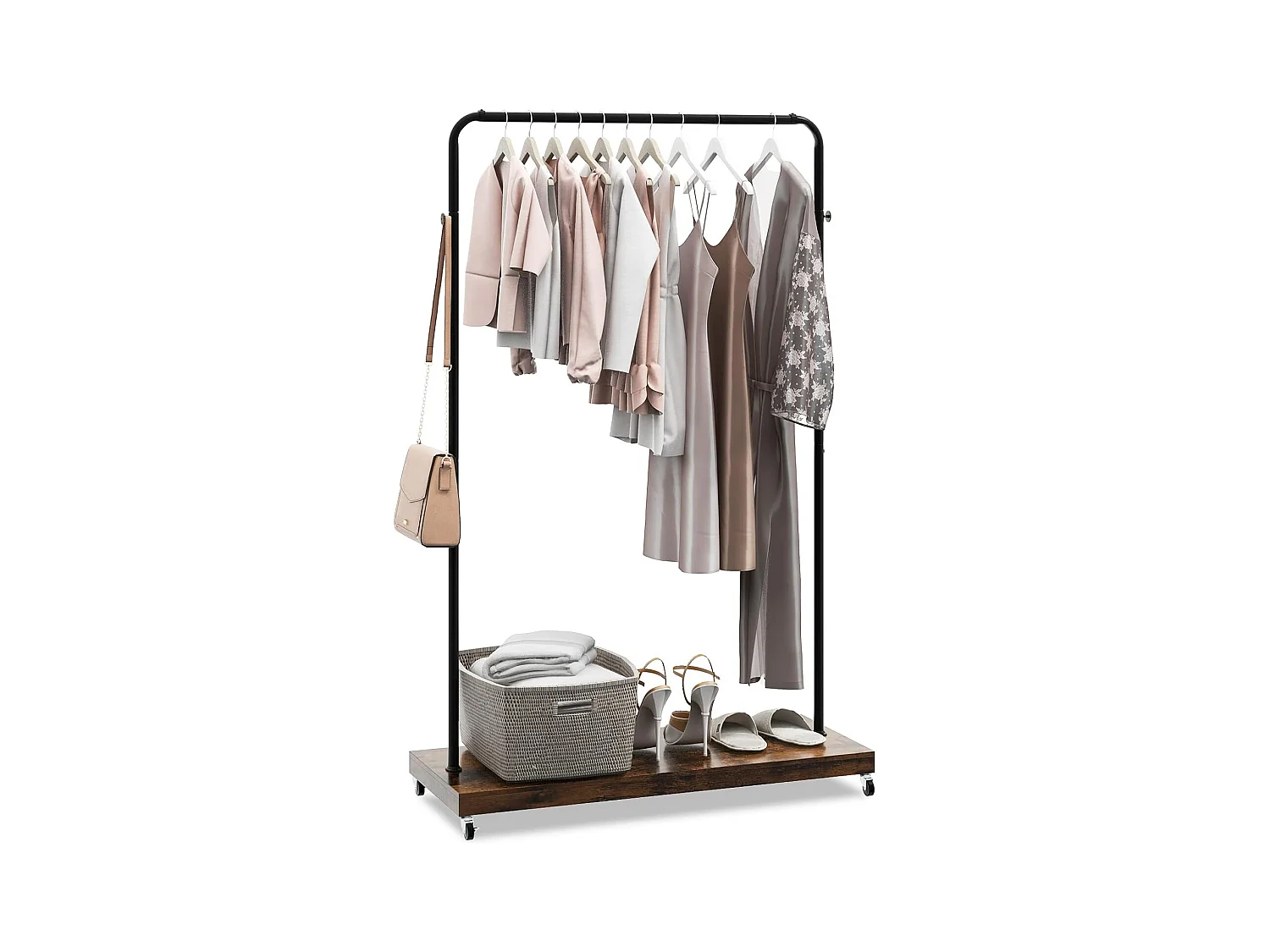 Porte-manteau mural Furnilux - Noir industriel 110x30x27 cm - 8 crochets et étagère