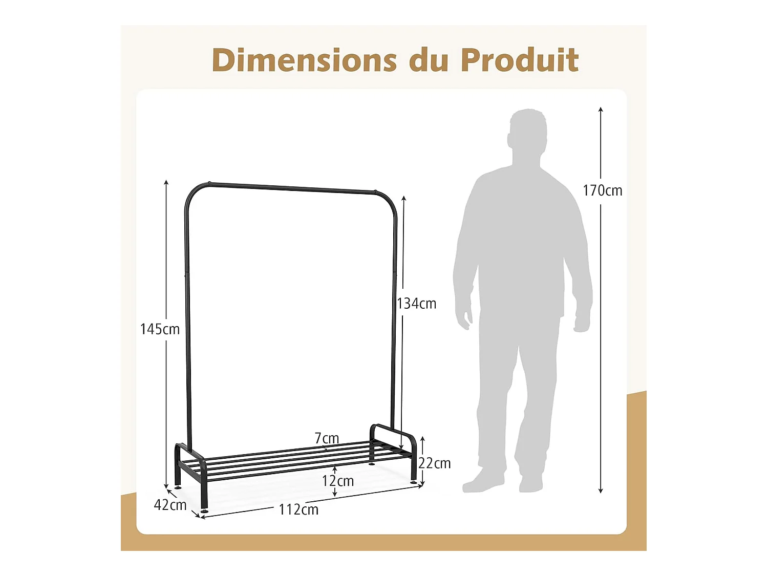 Portant à vêtements,150 x 60 x 170 cm,robuste et facile à monter pour un rangement optimal