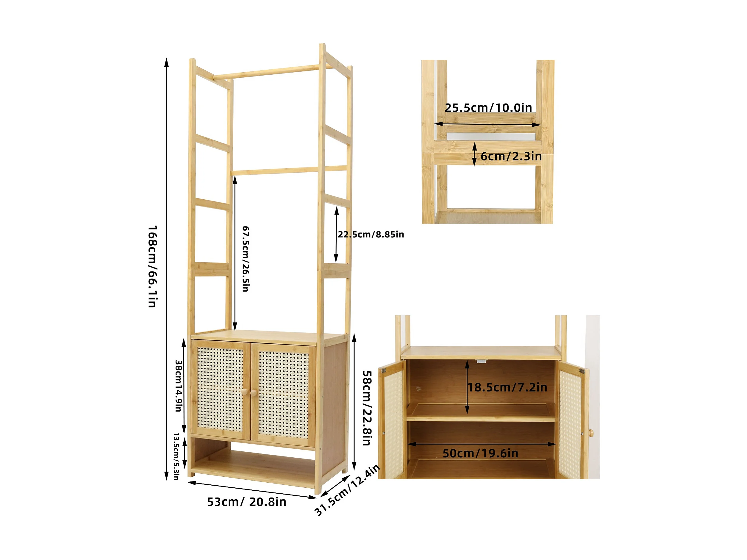 Porte-manteau en bambou avec étagères et crochets, bois naturel, stable et pratique (116x43.5x160cm)
